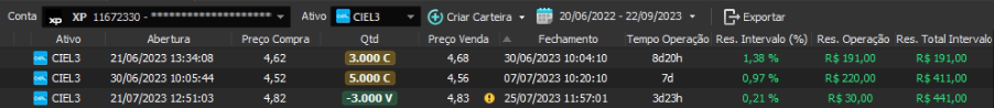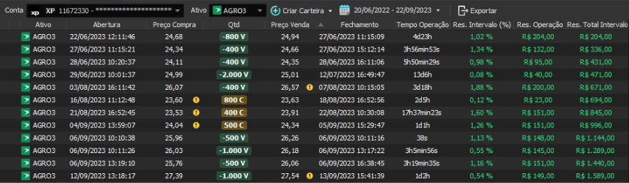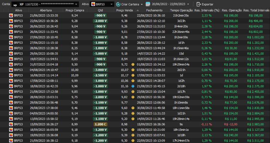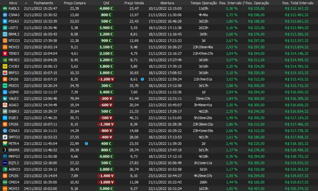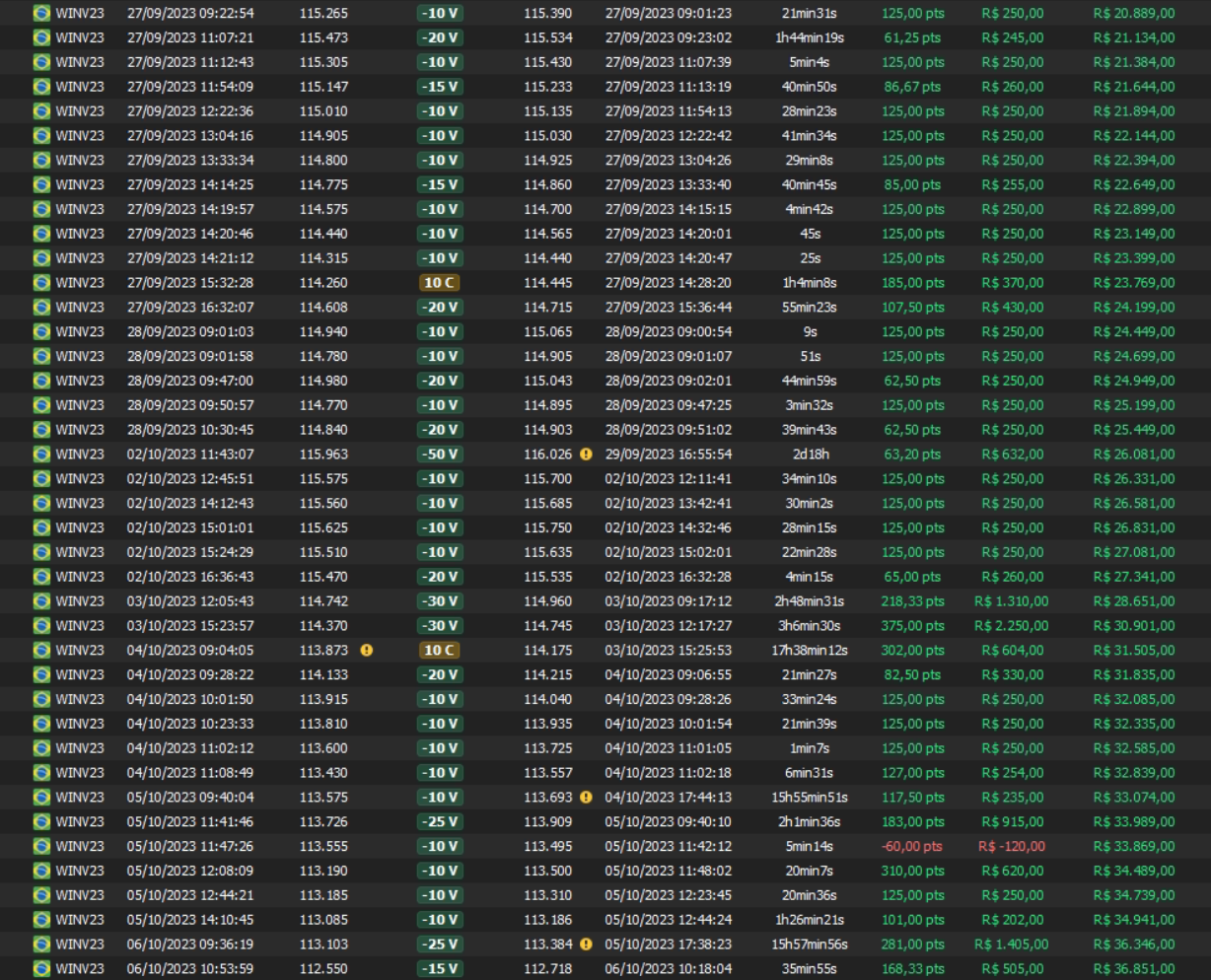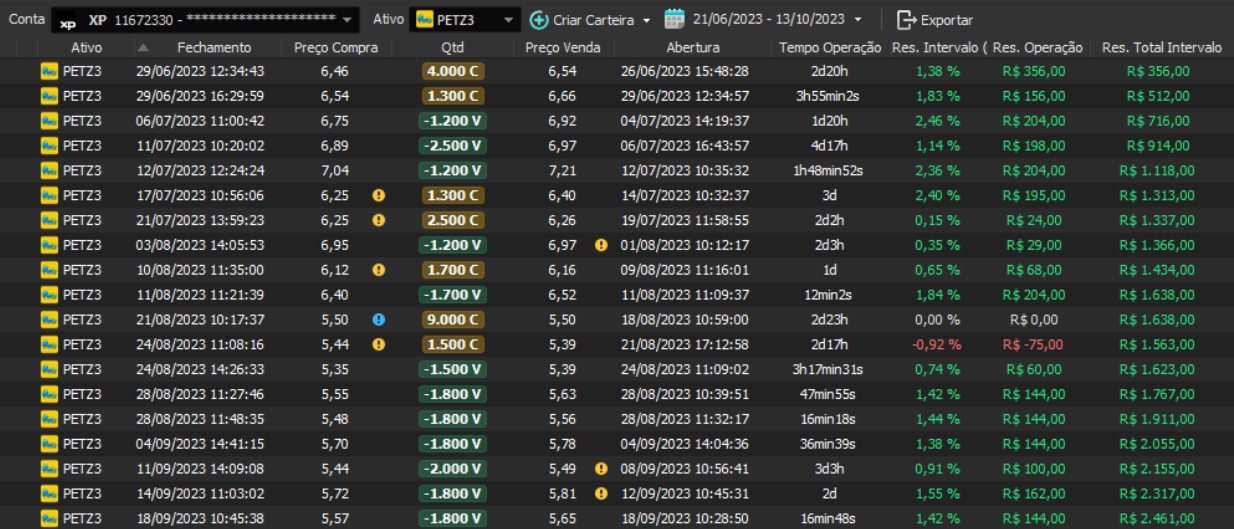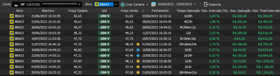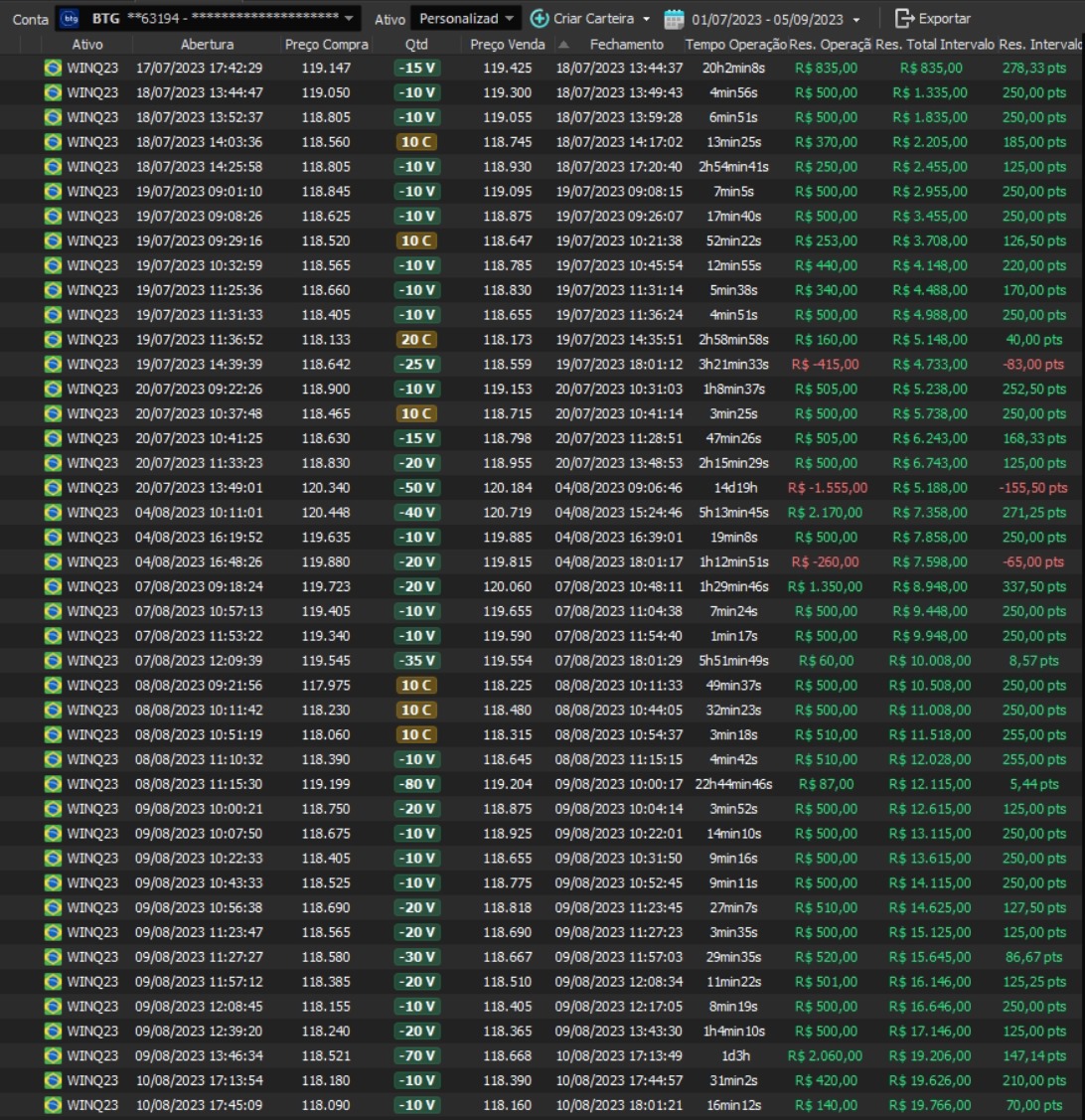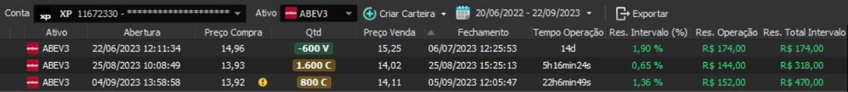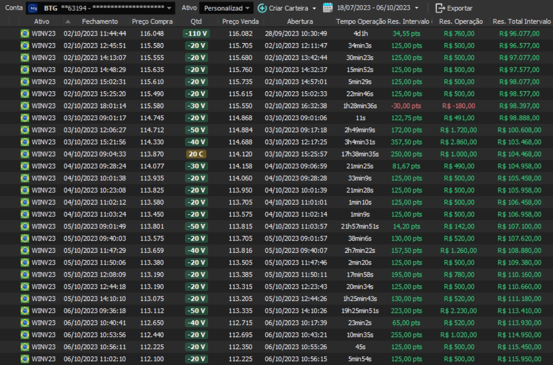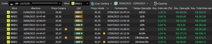 Relatório últimas operações Indicador Windex swing trade: