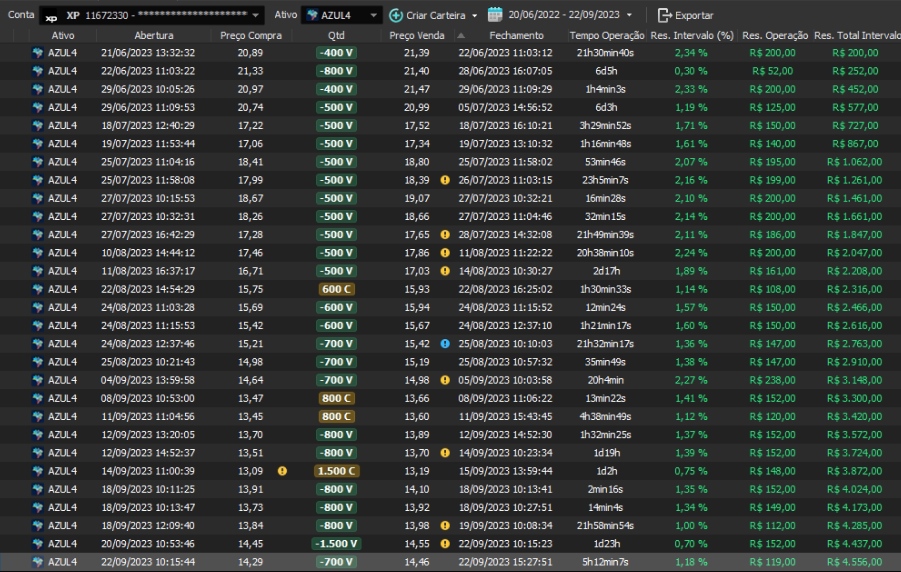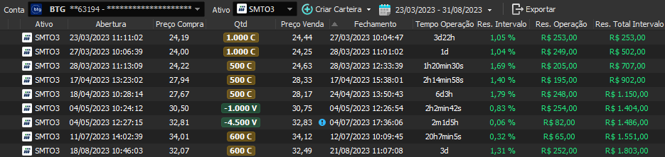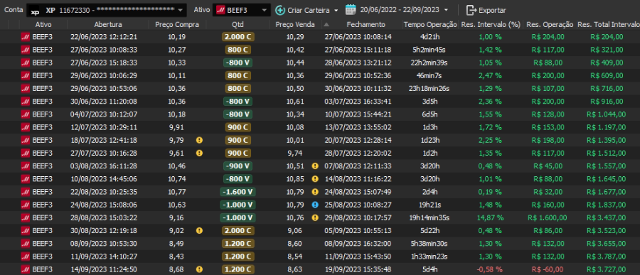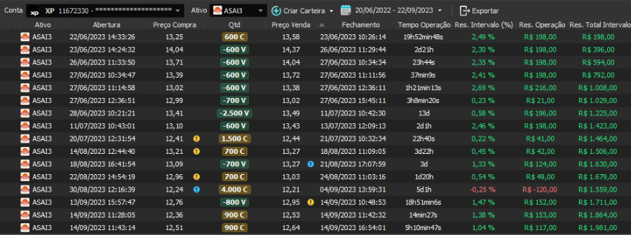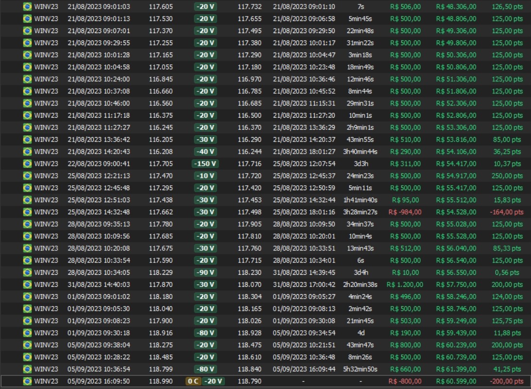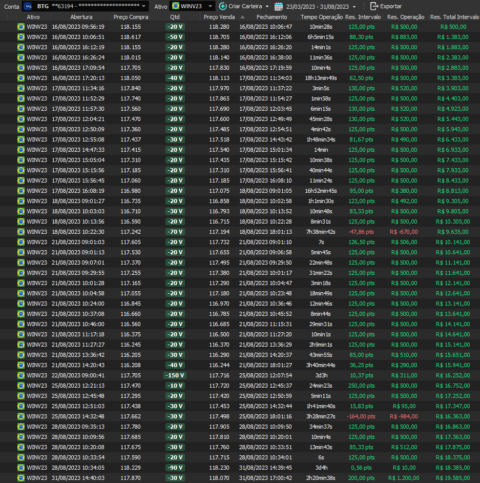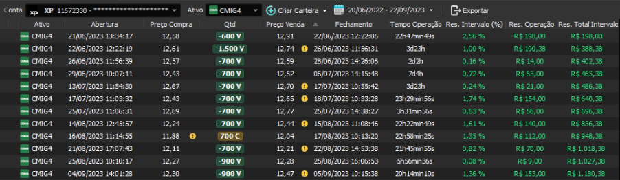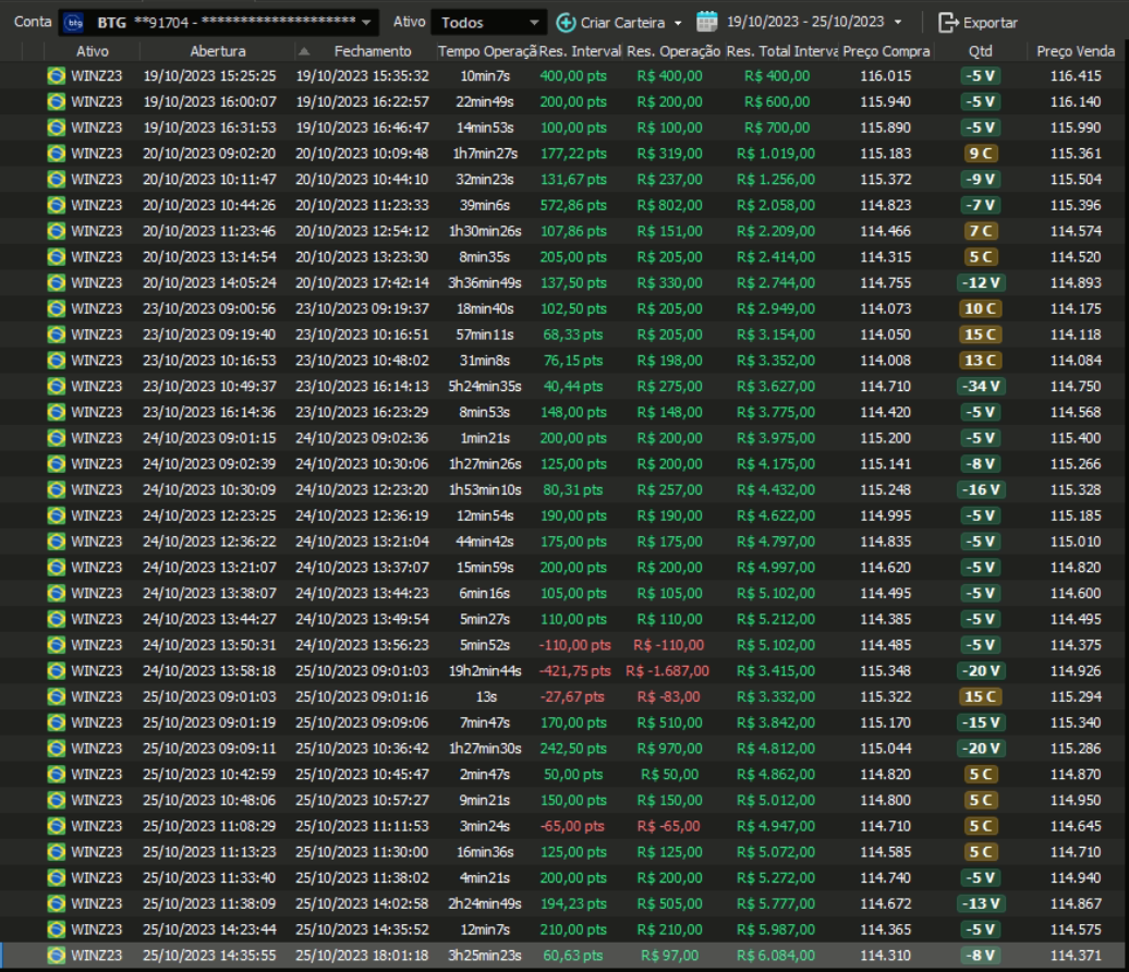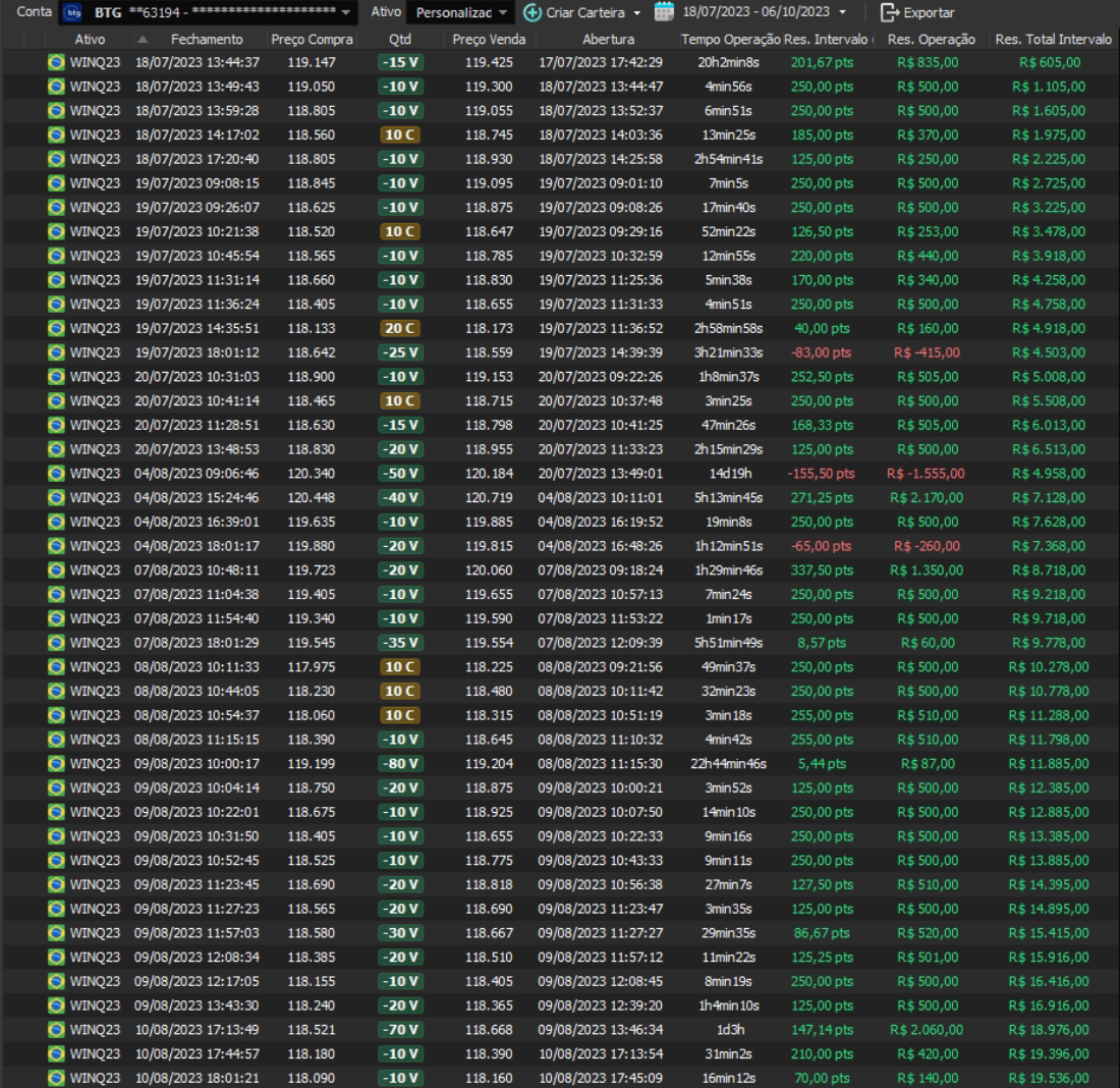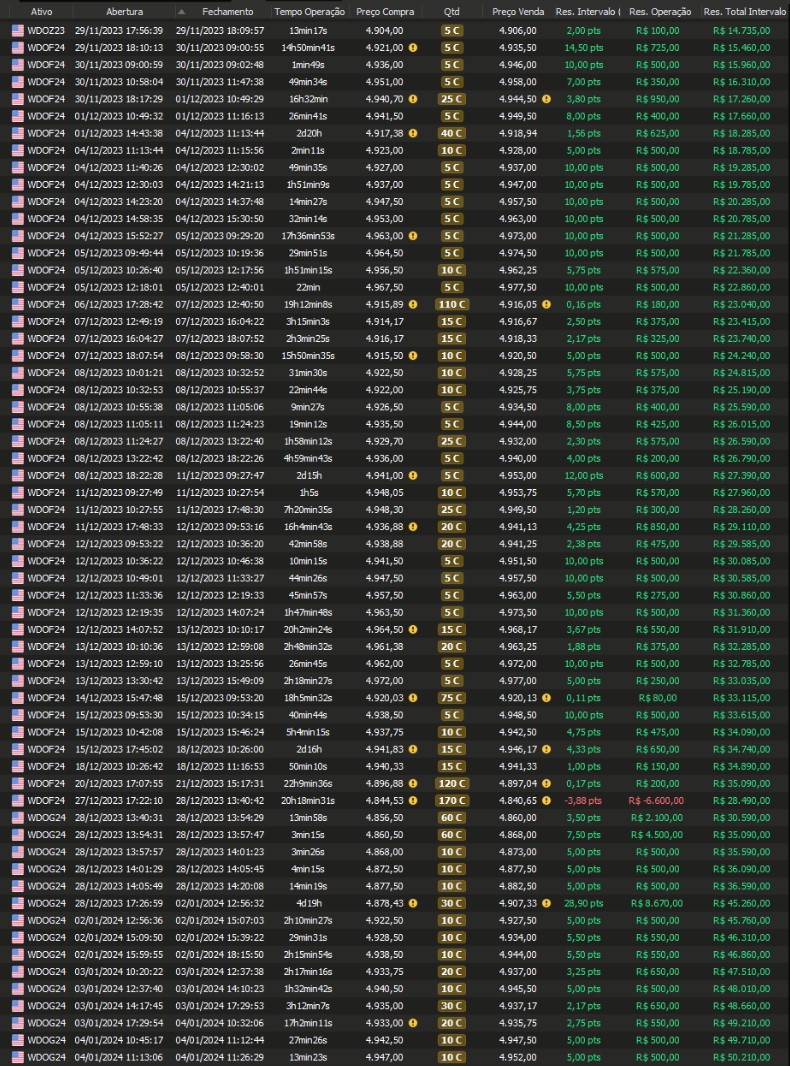 Relatório últimas operações Indicador Windex swing trade:
