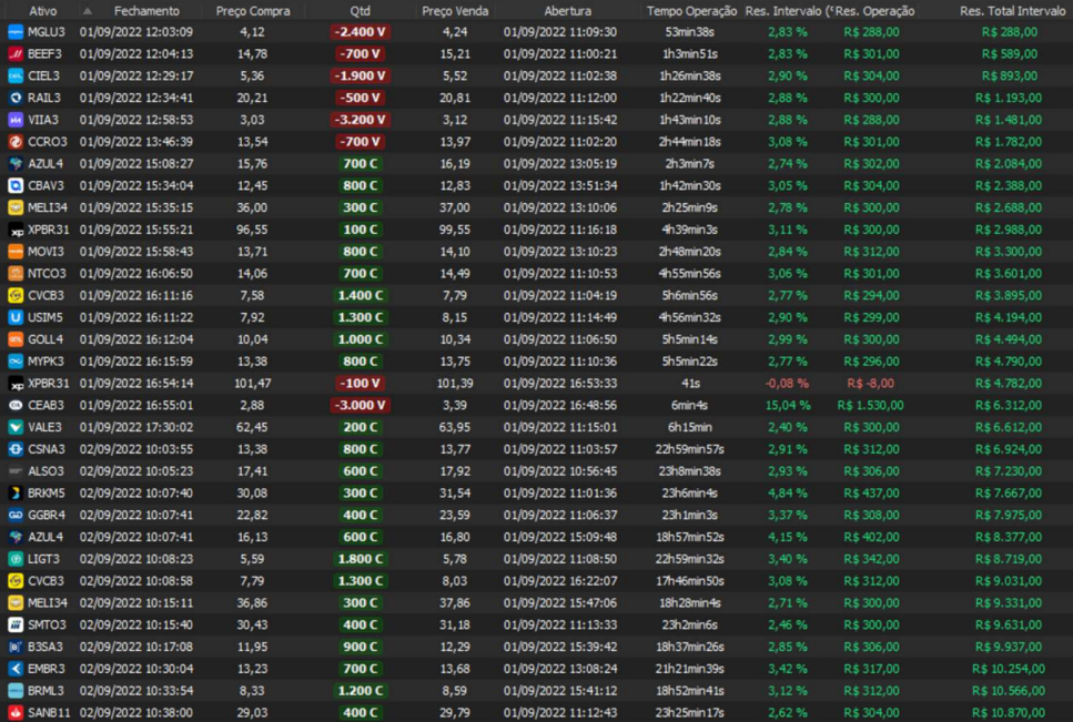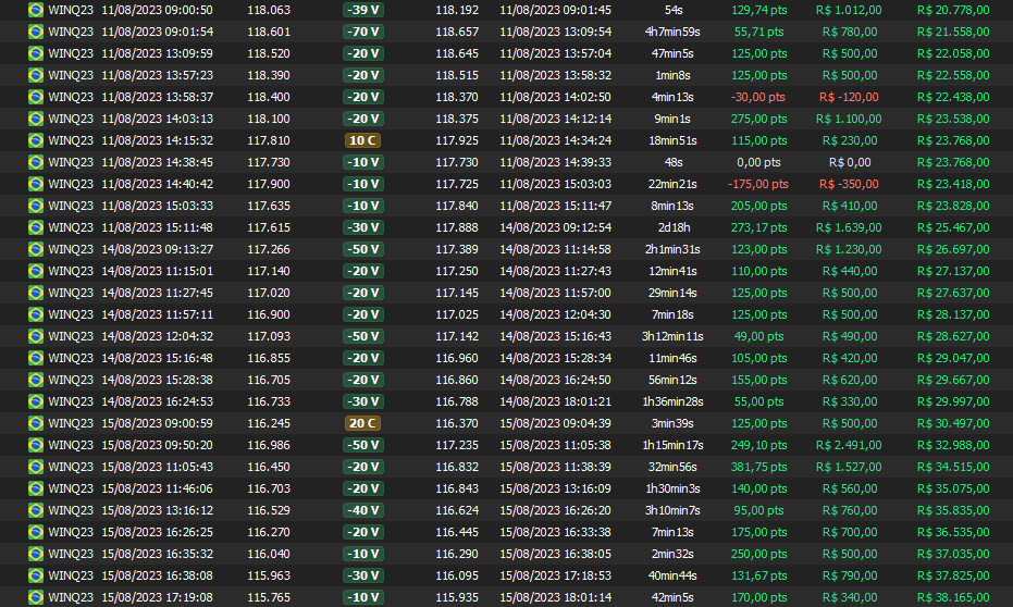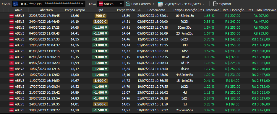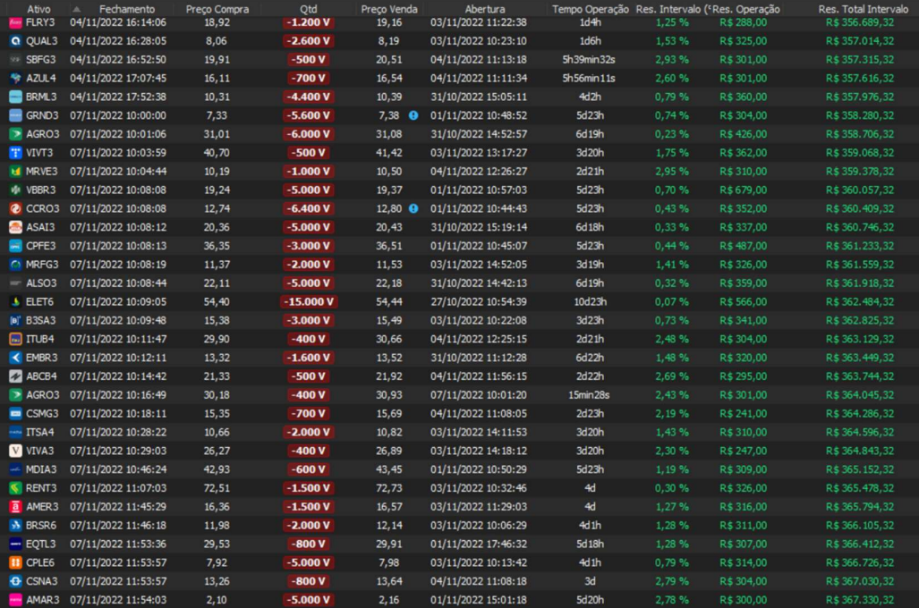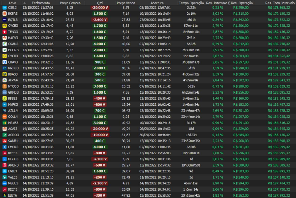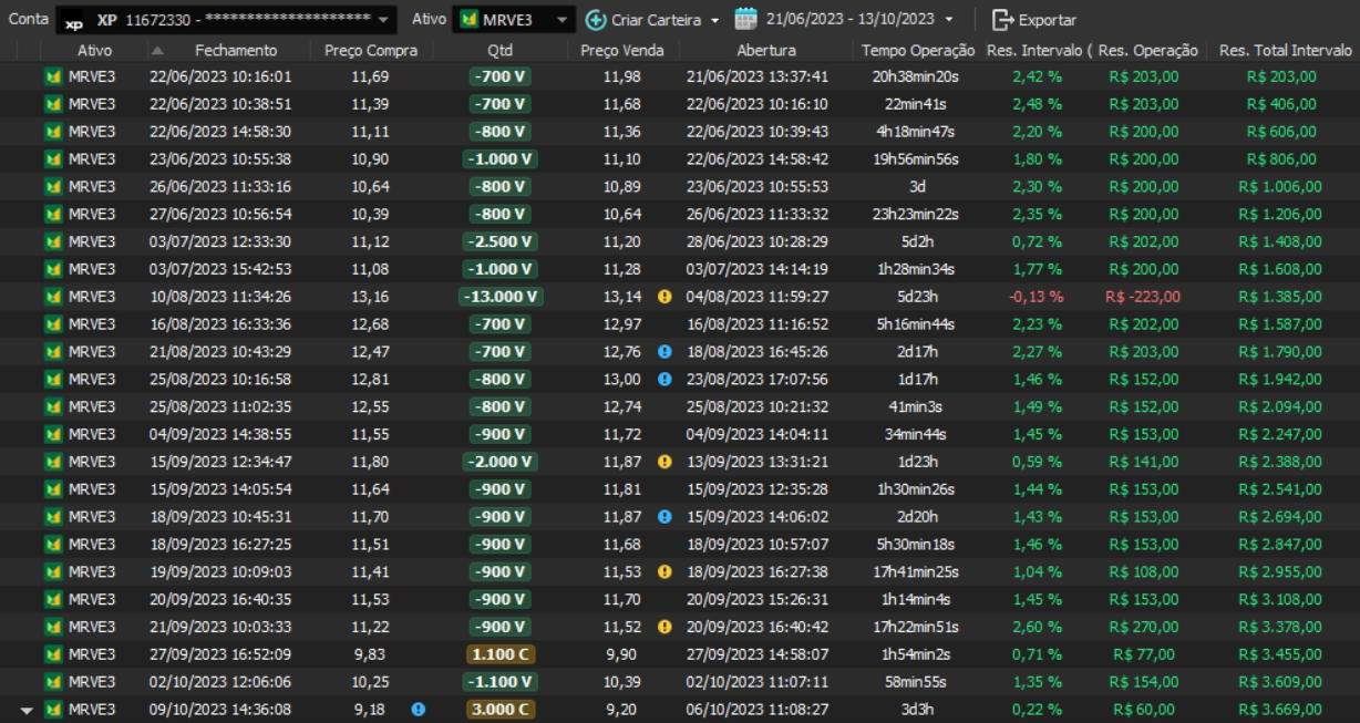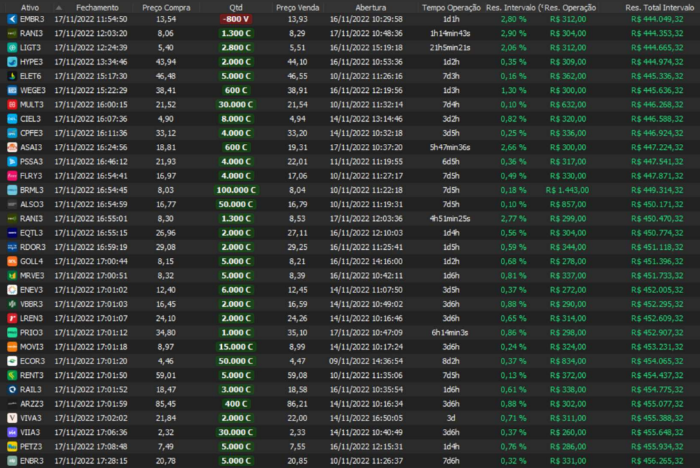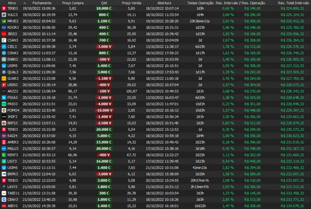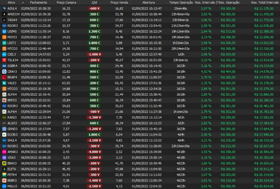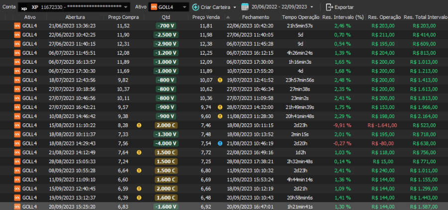 Relatório últimas operações Indicador Windex swing trade: