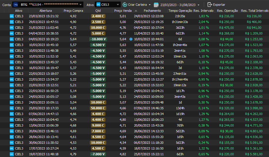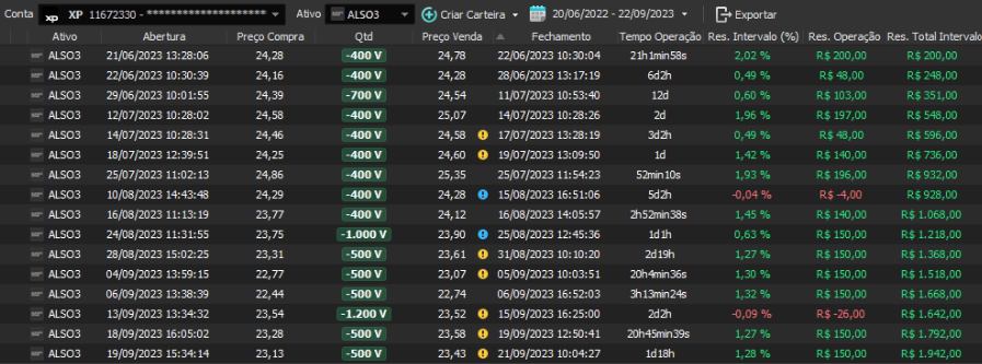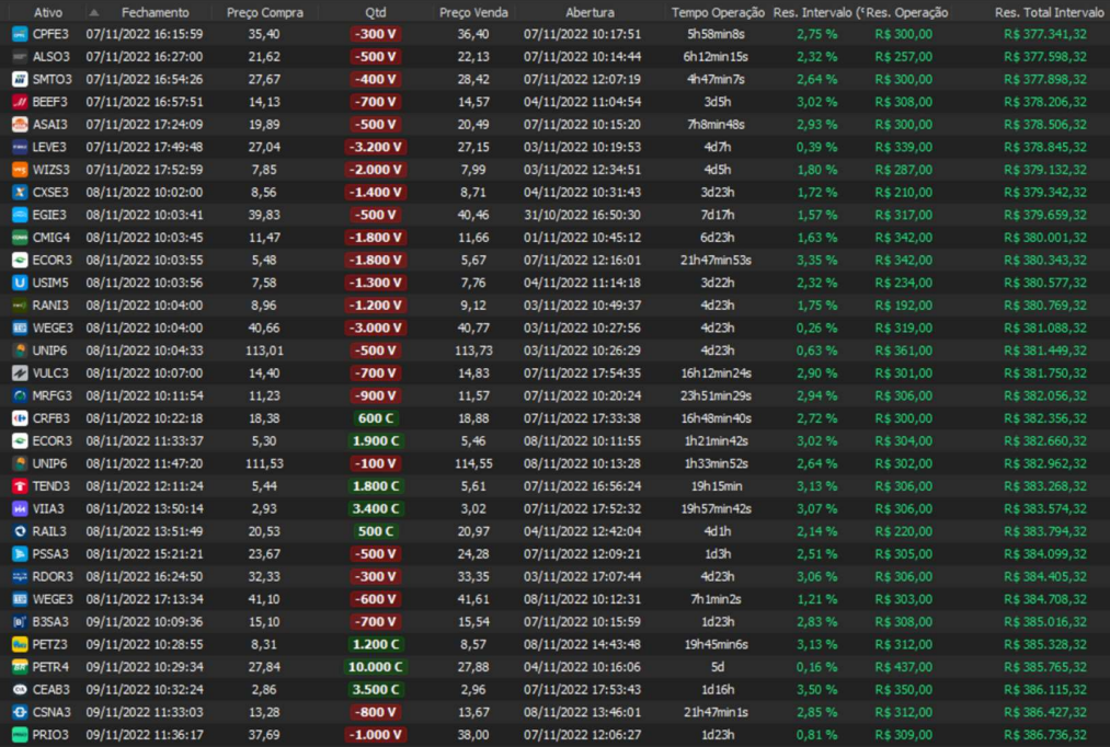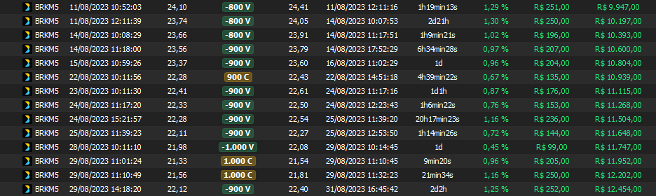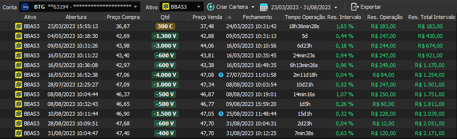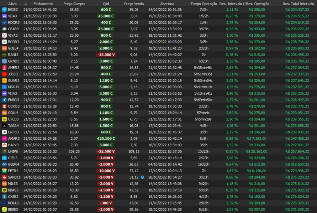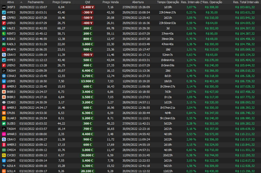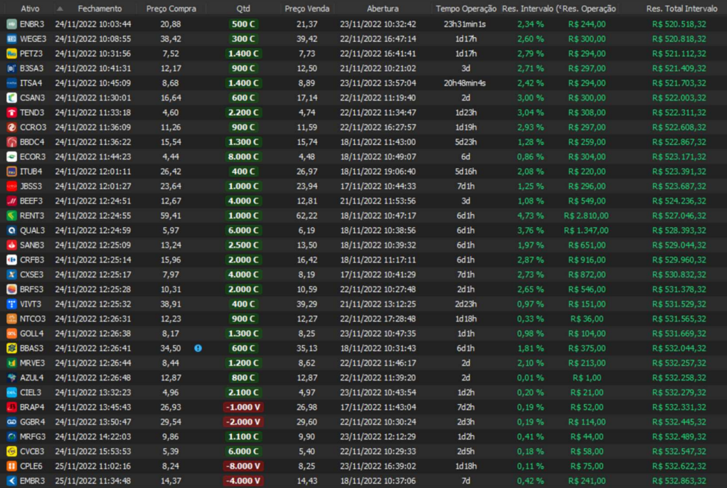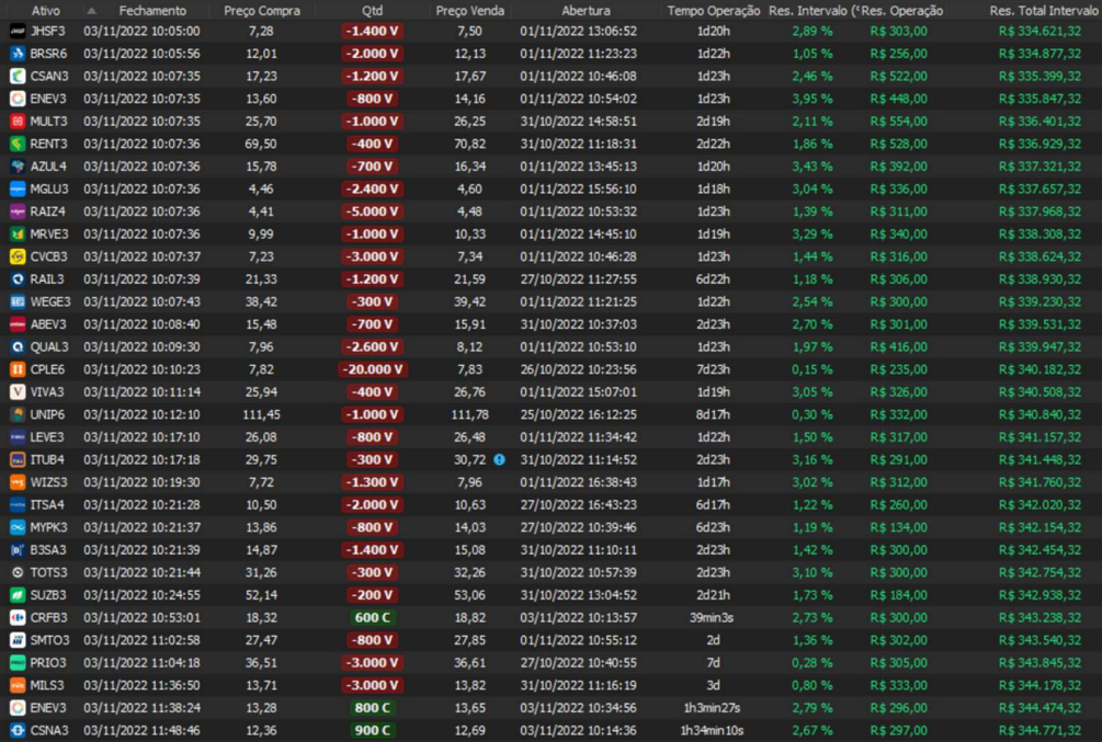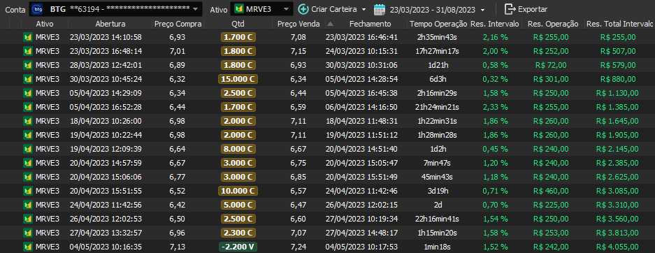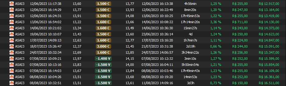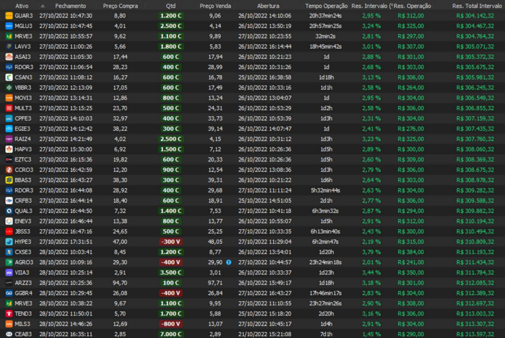 Relatório últimas operações Indicador Windex swing trade: