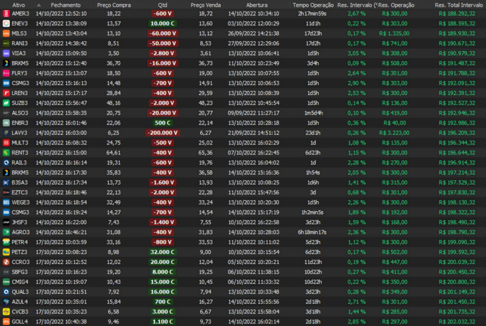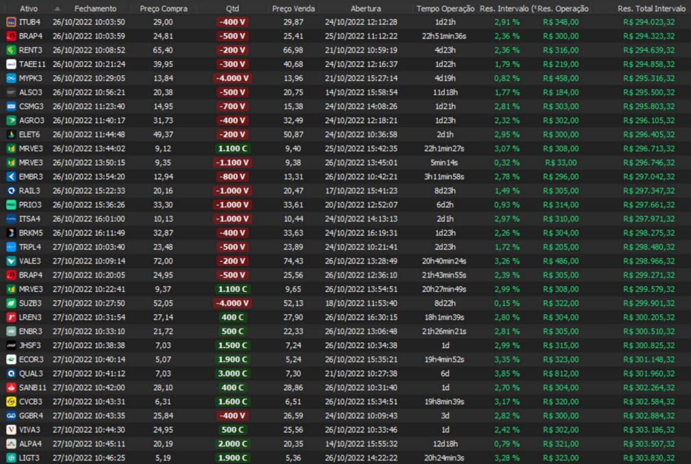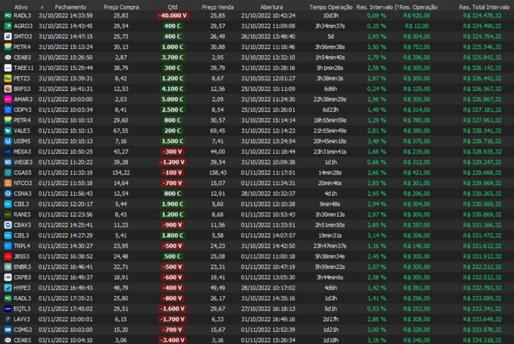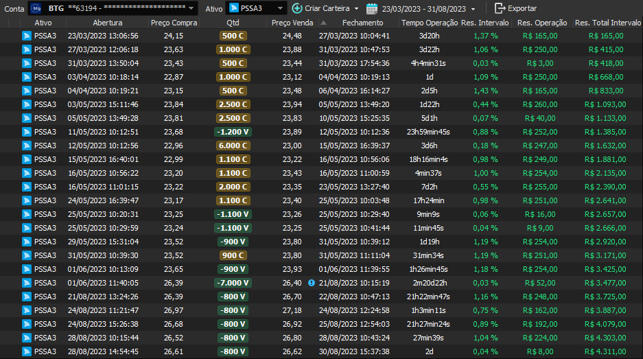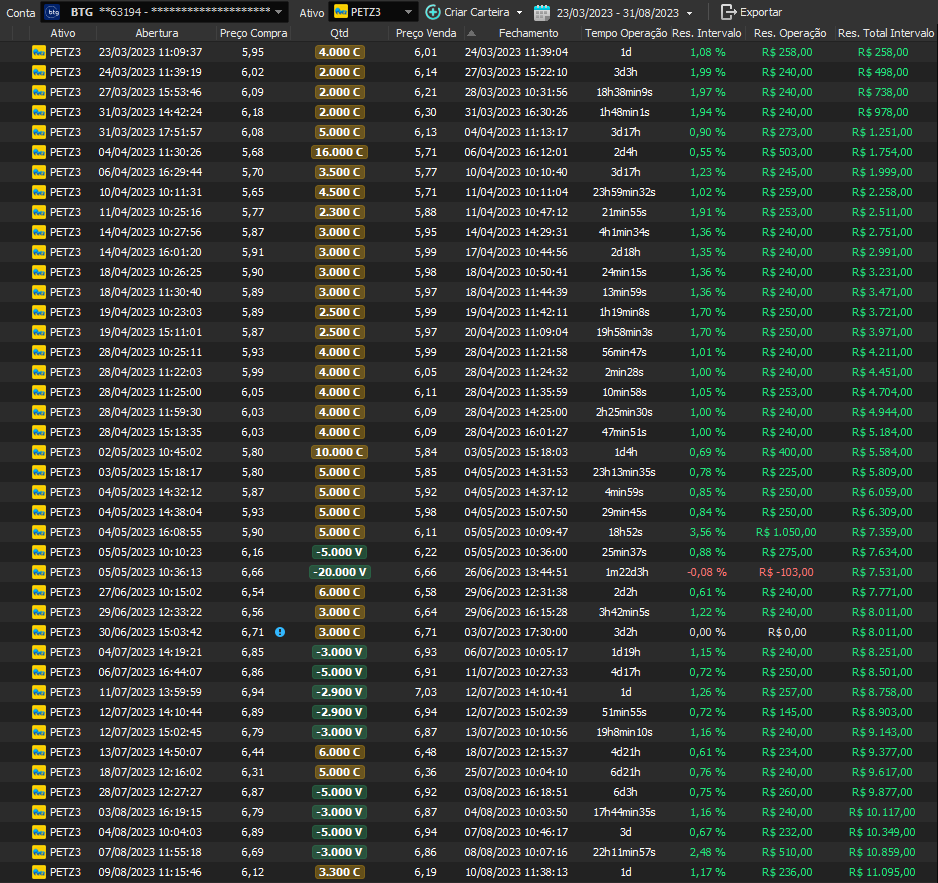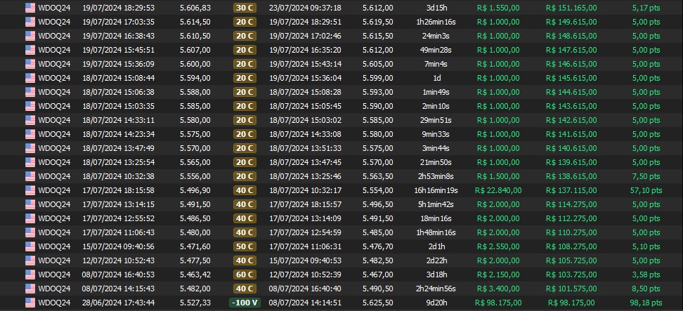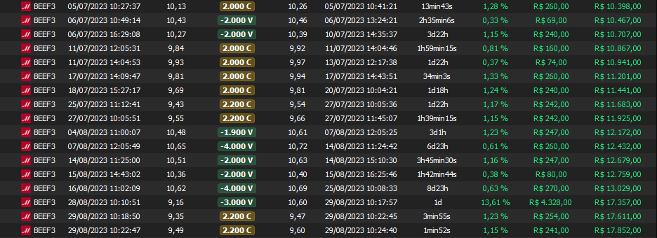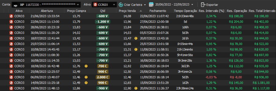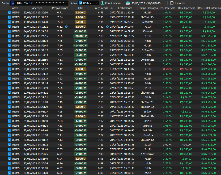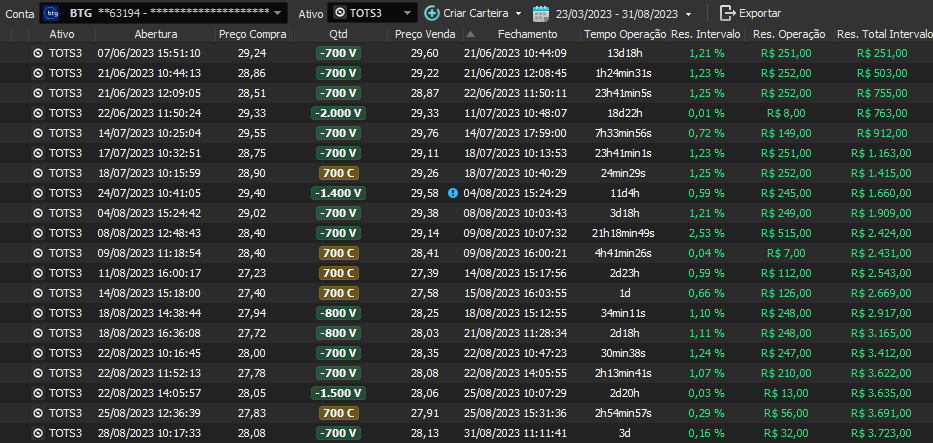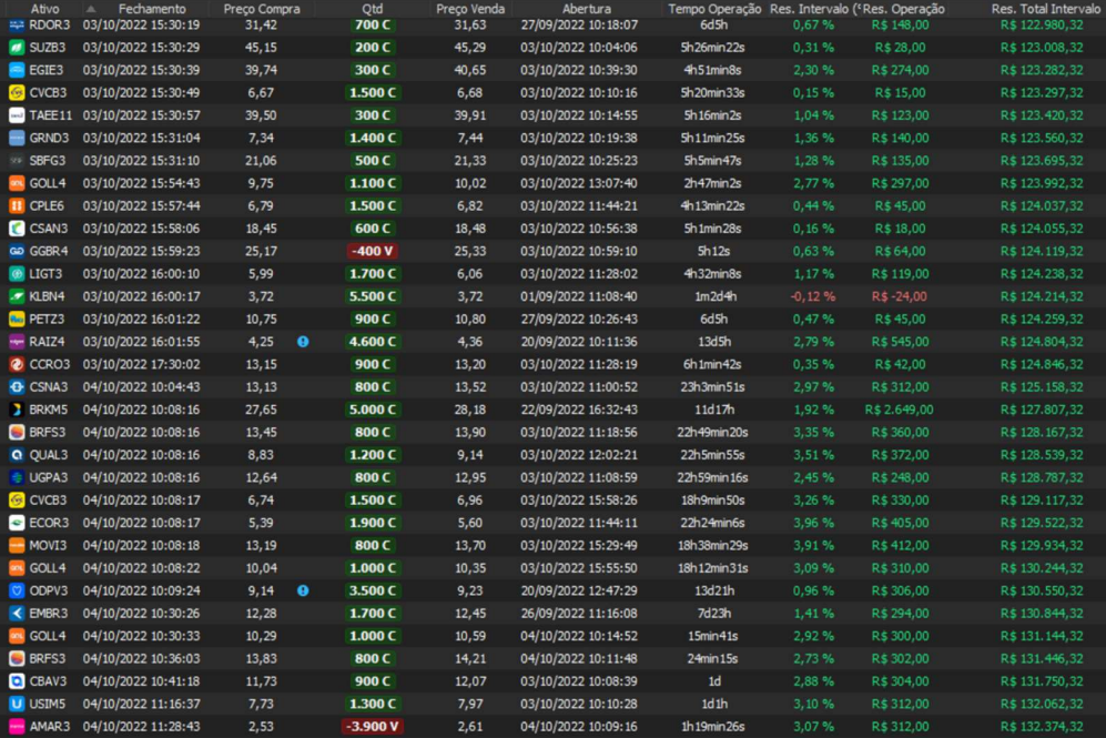Relatório últimas operações Indicador Windex swing trade: