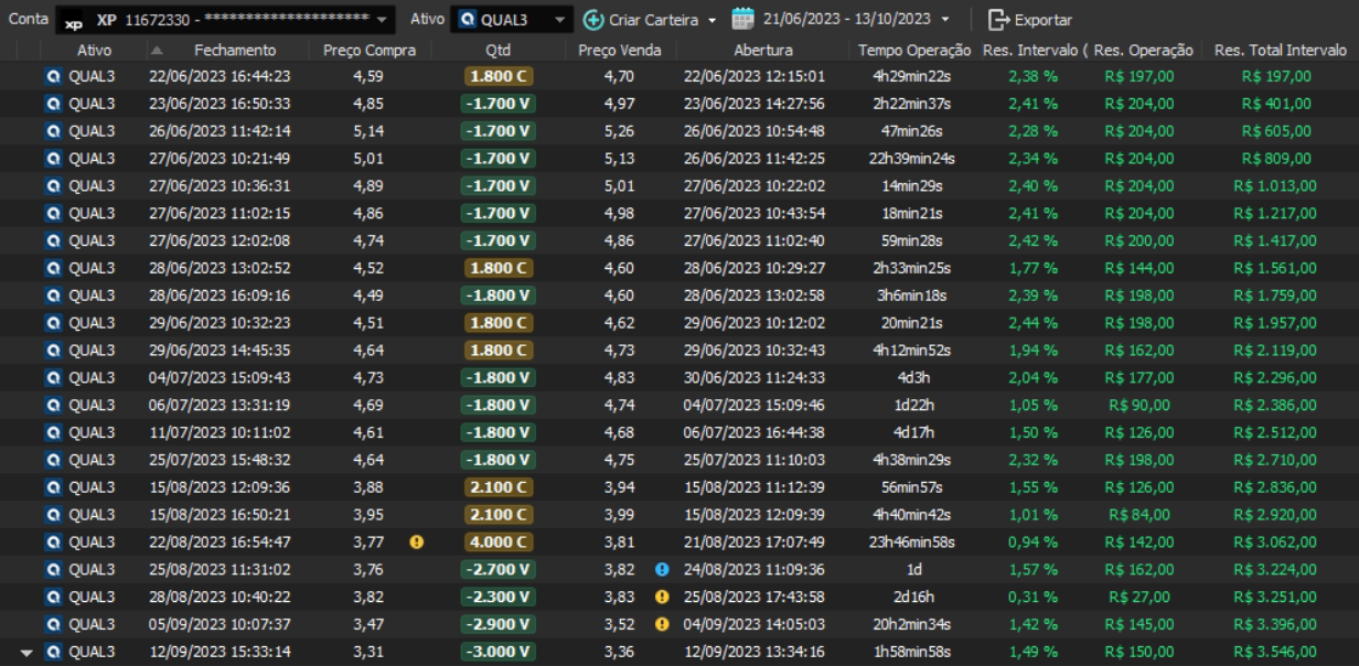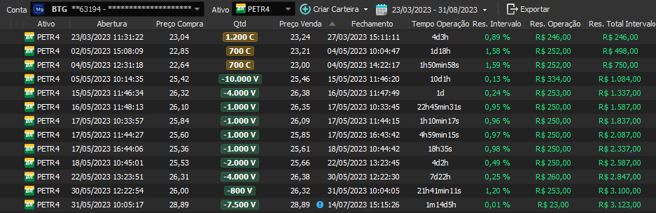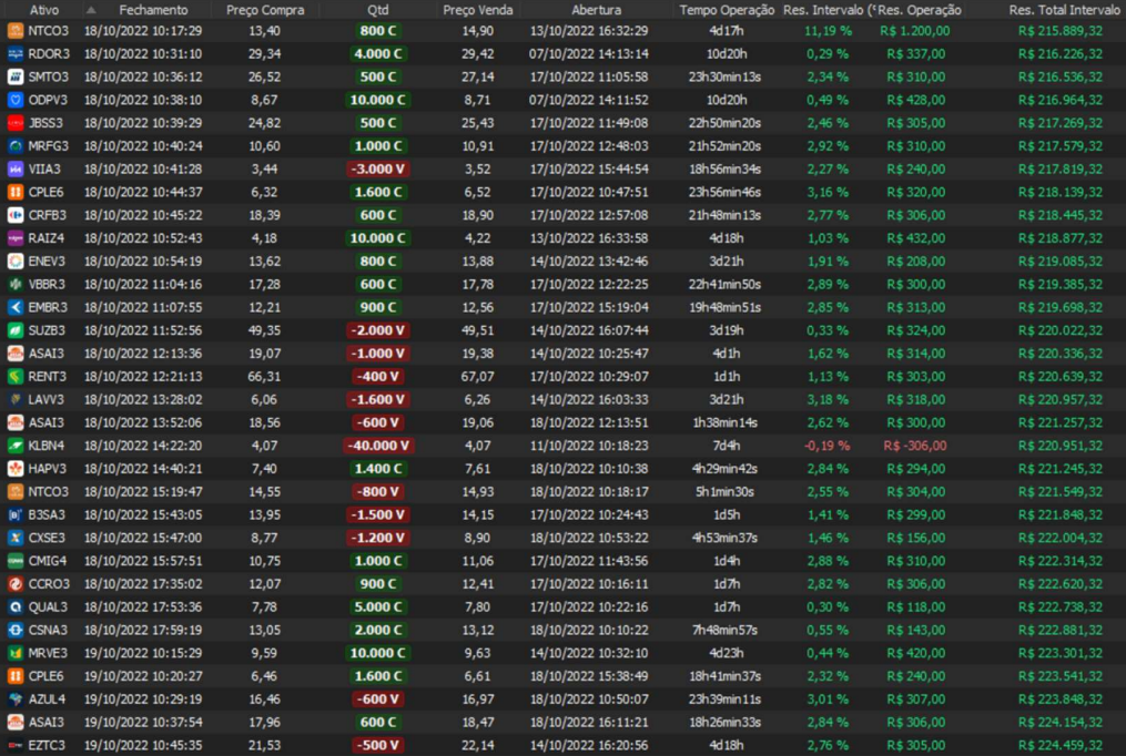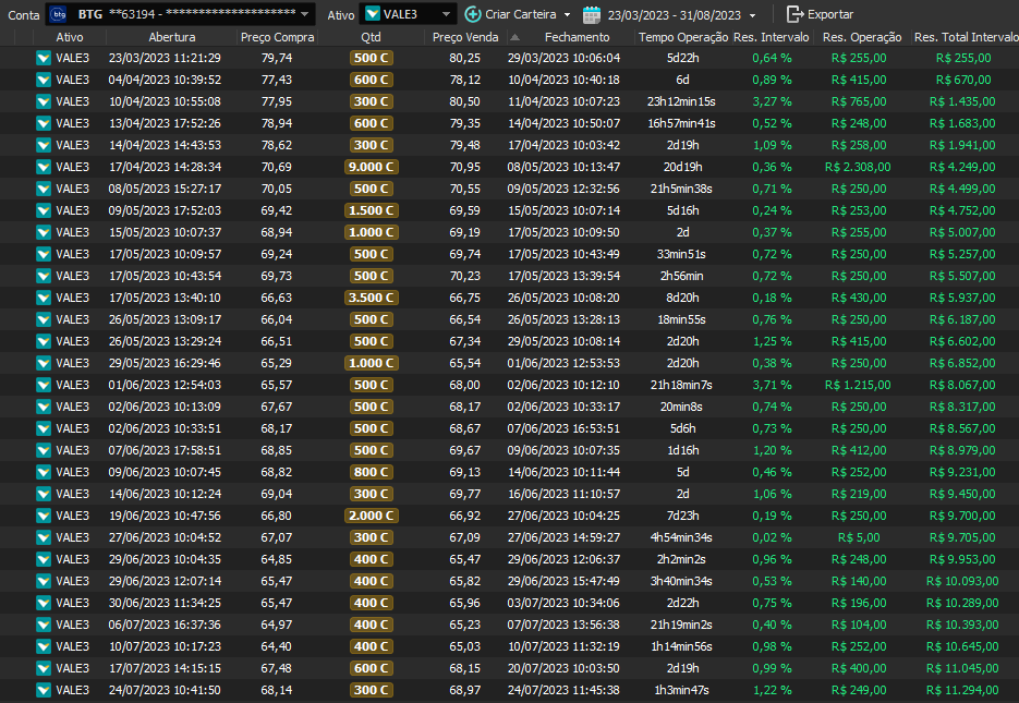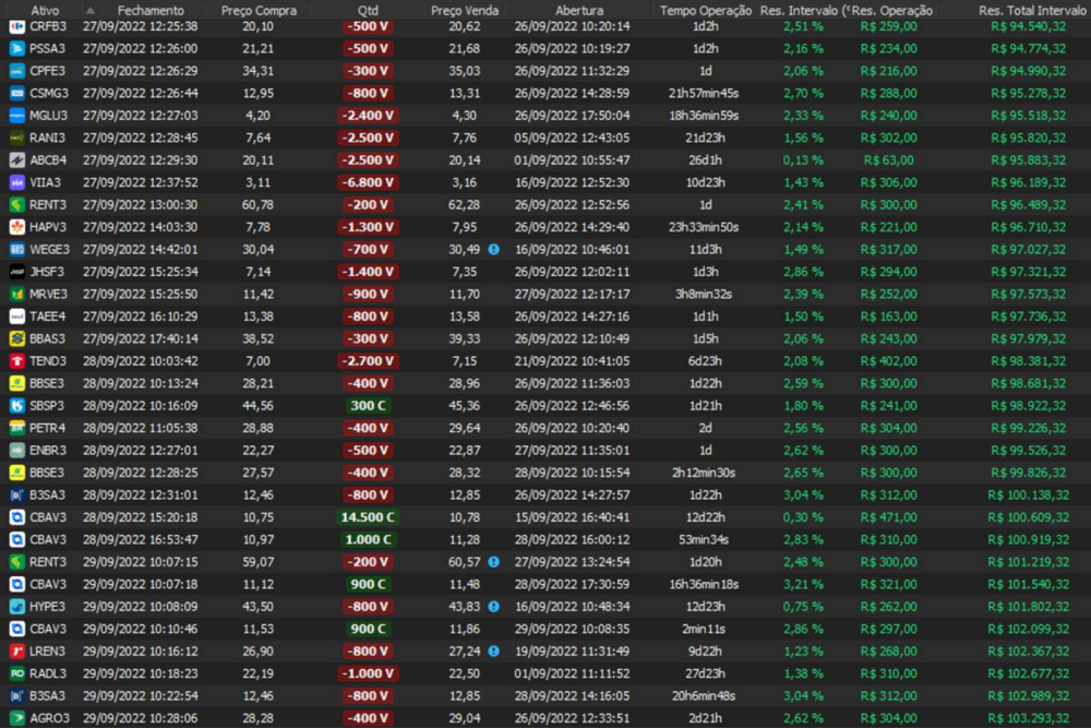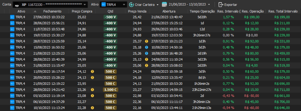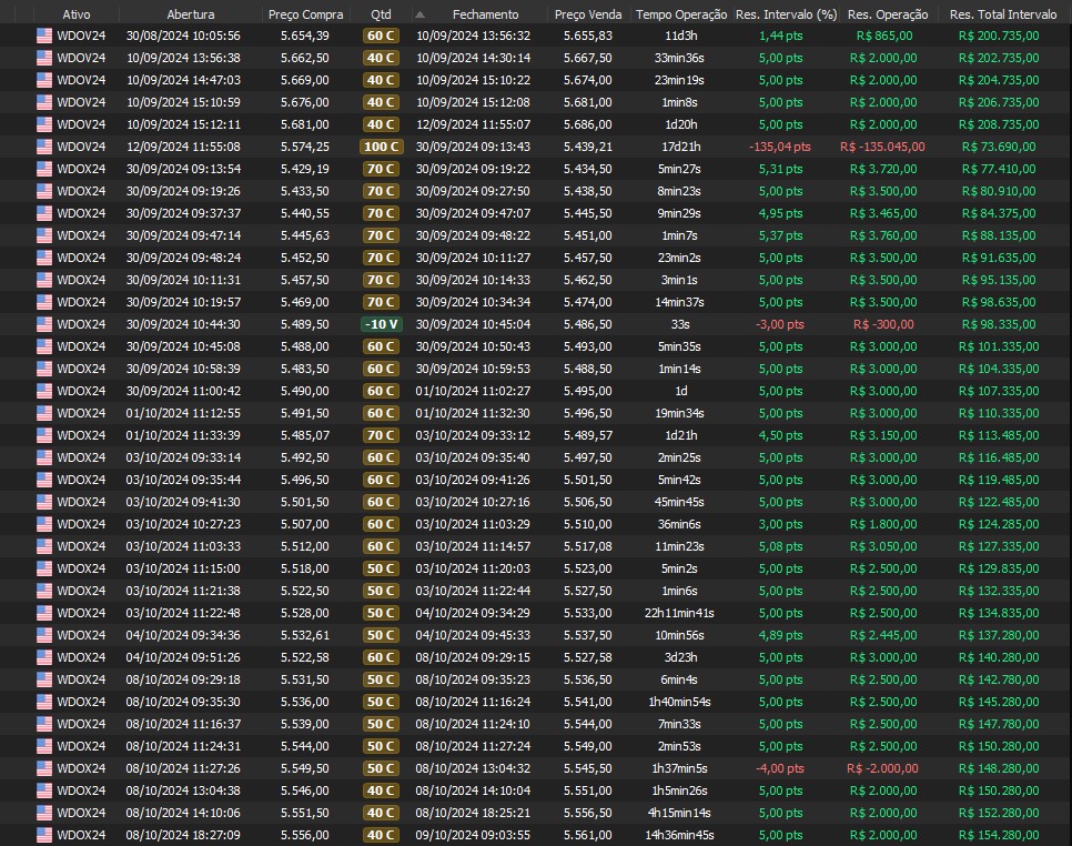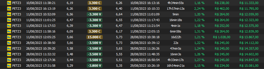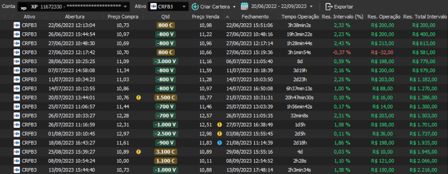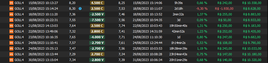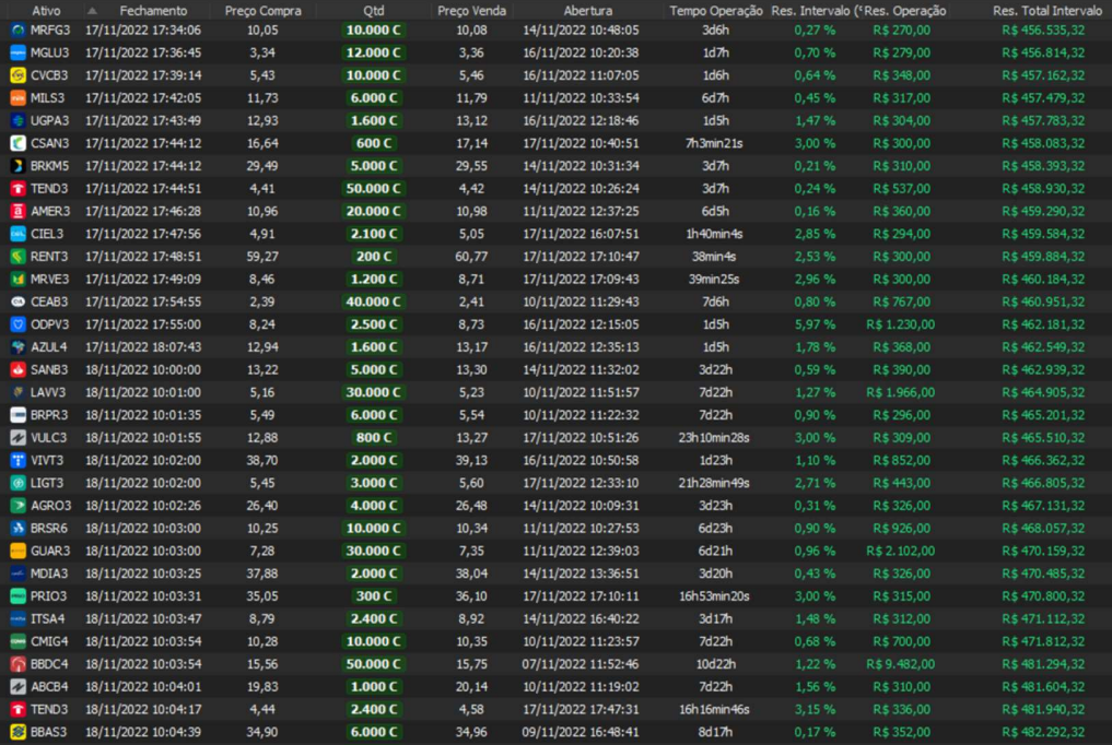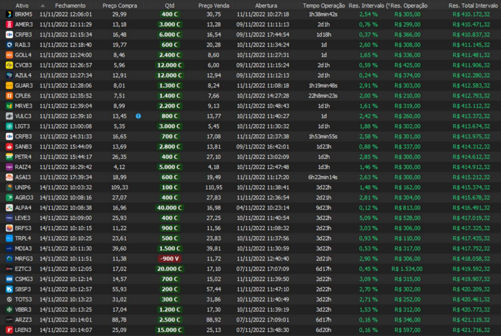 Relatório últimas operações Indicador Windex swing trade: