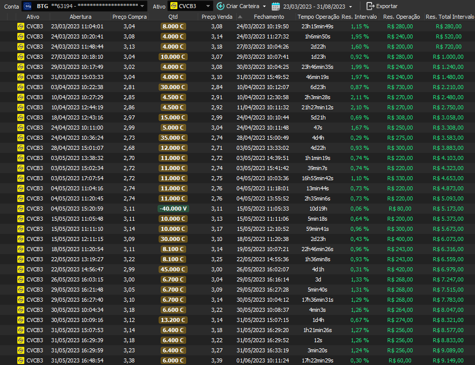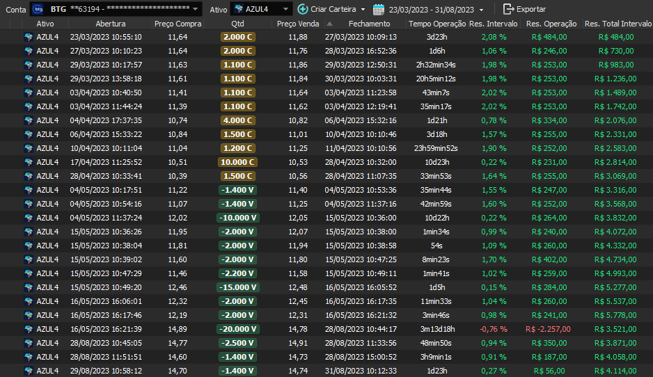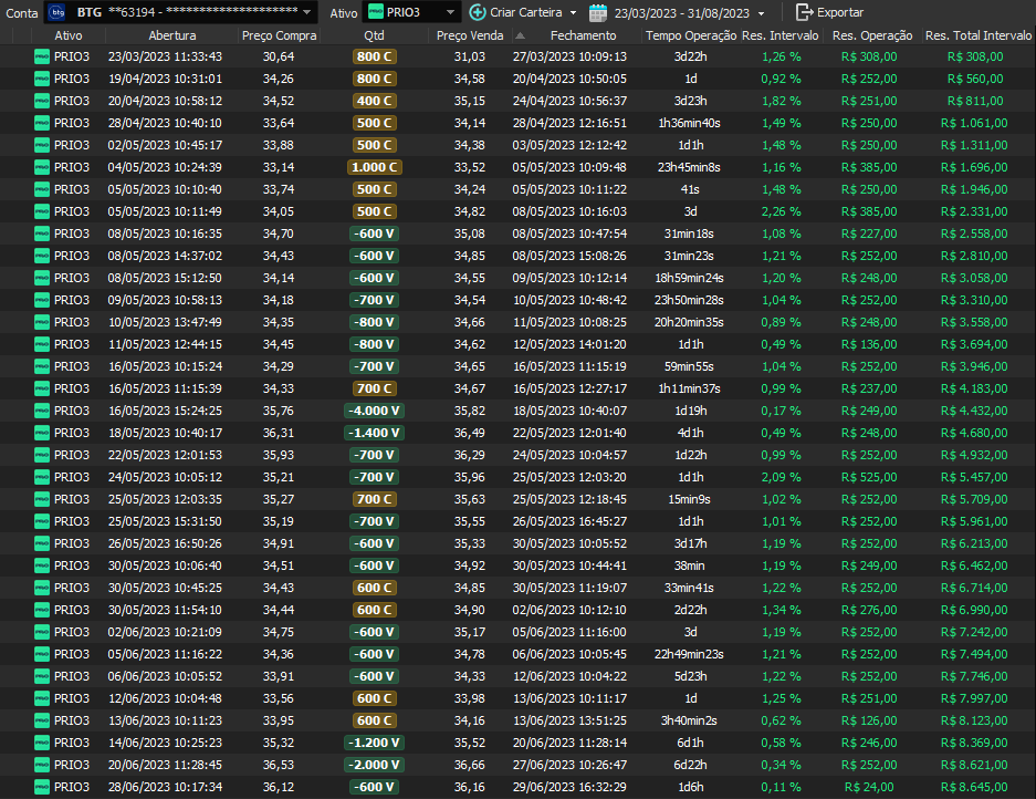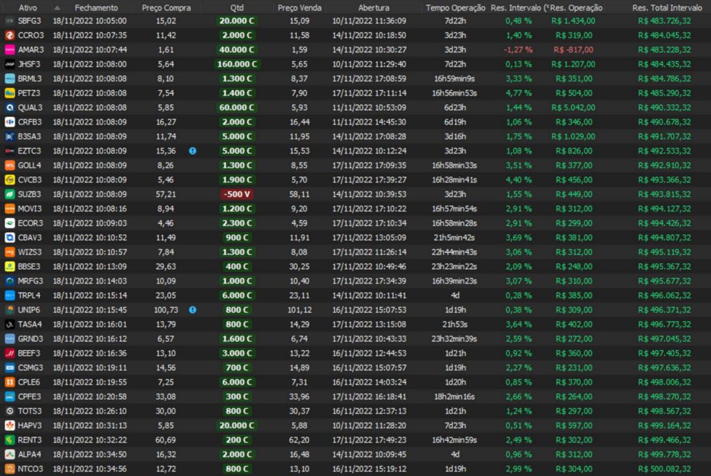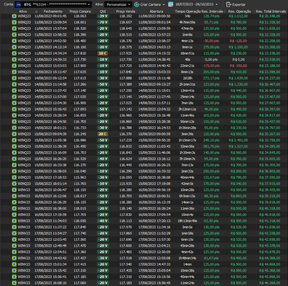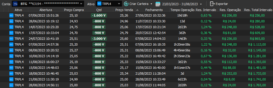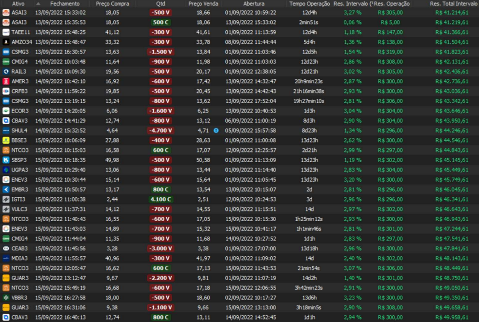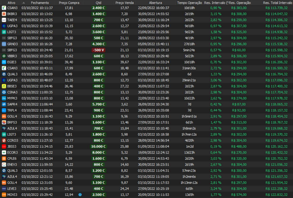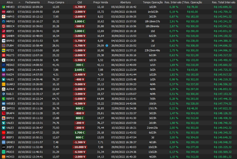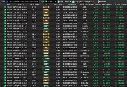 Relatório últimas operações Indicador Windex swing trade: