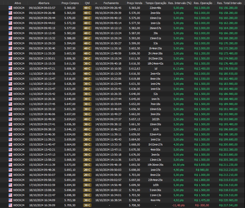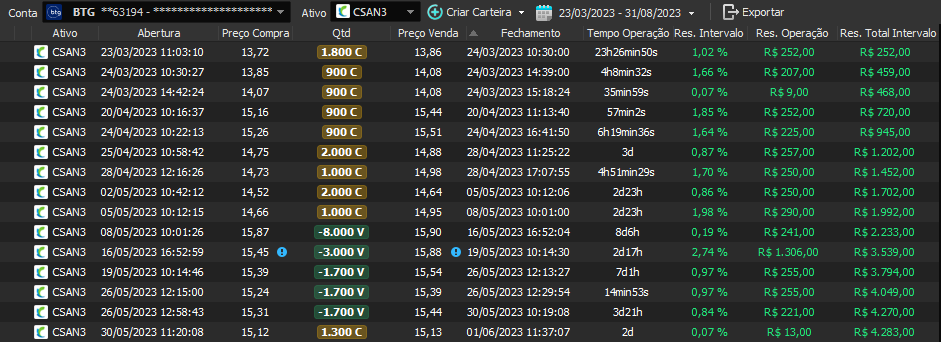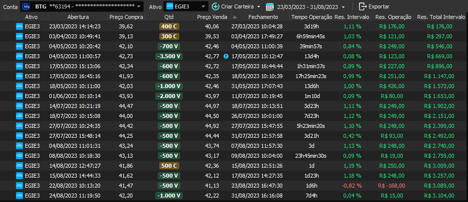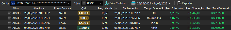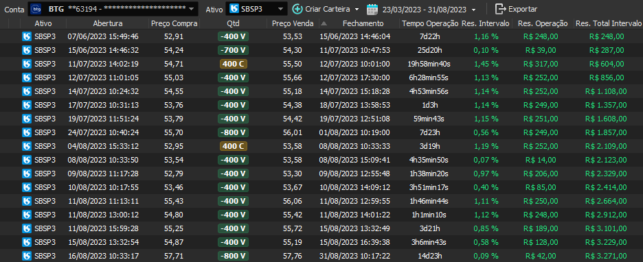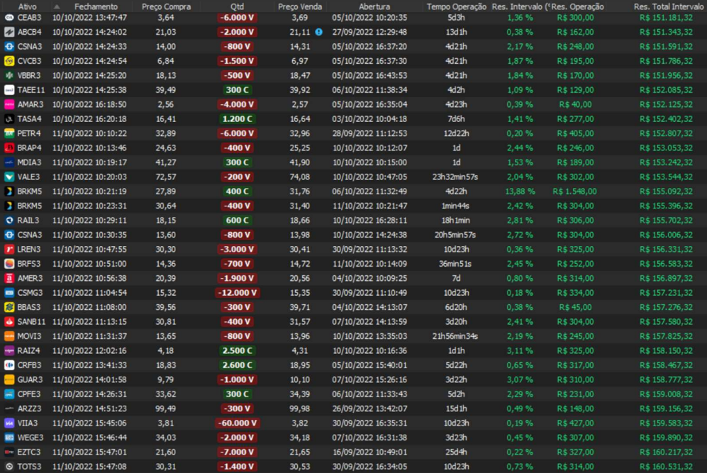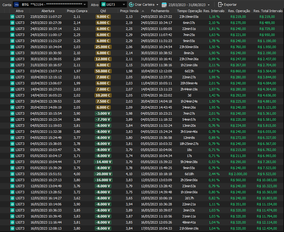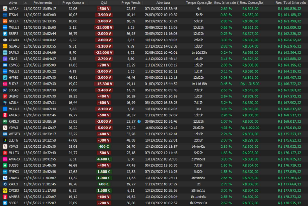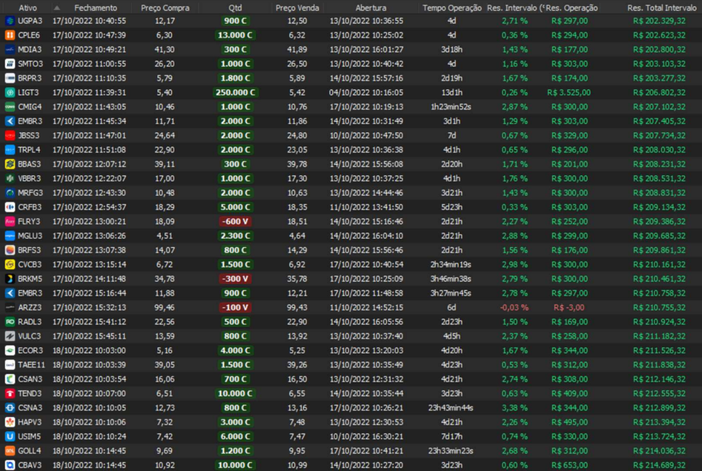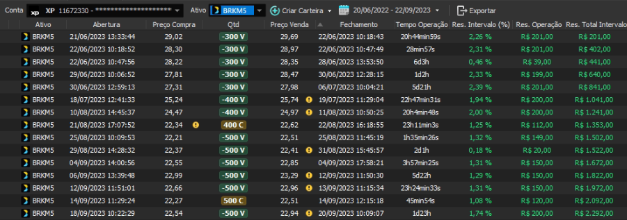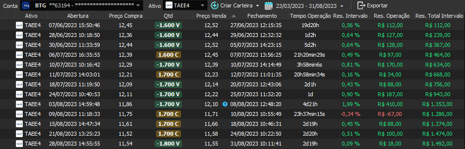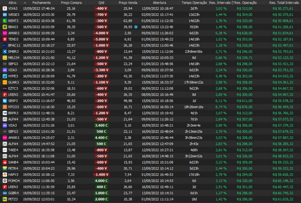 Relatório últimas operações Indicador Windex swing trade: