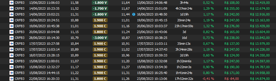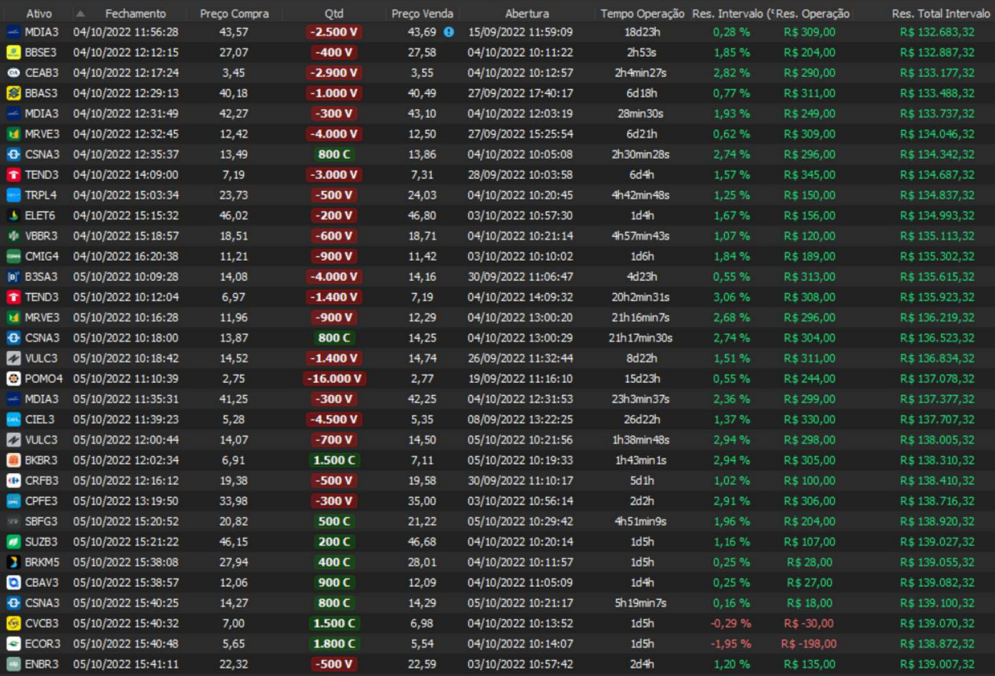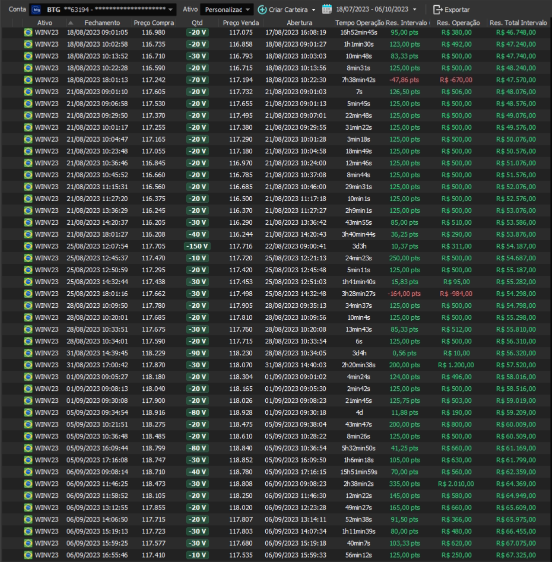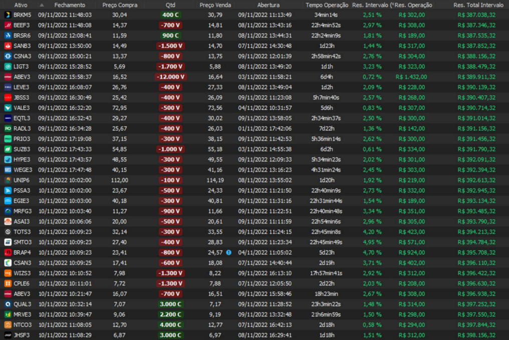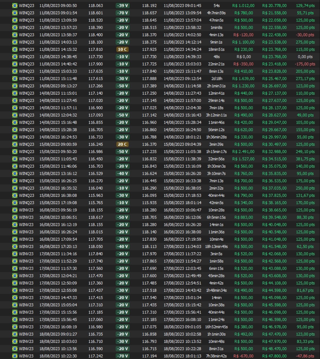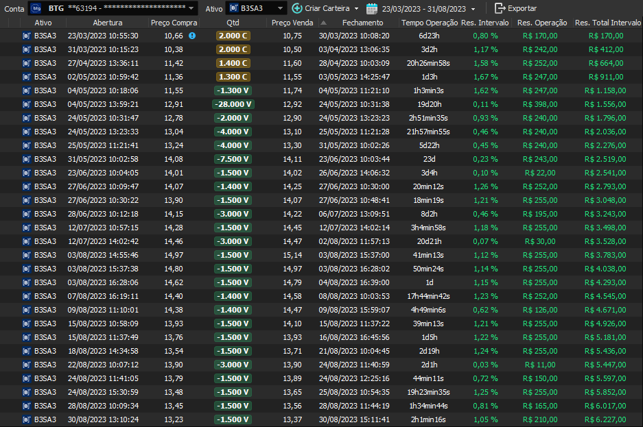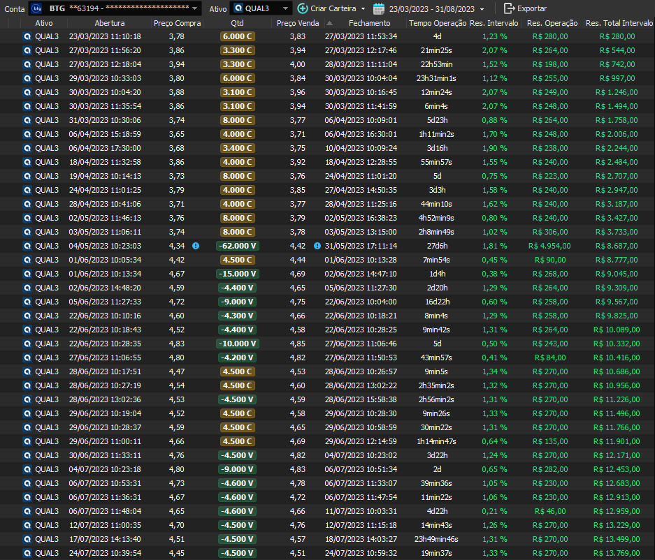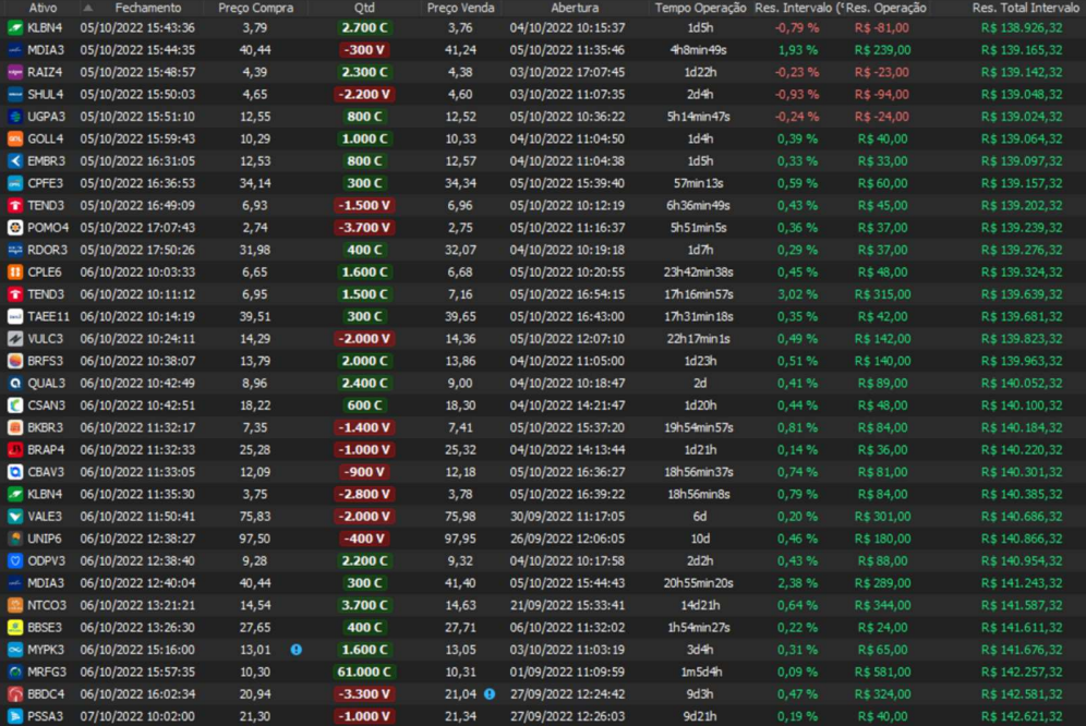 Relatório últimas operações Indicador Windex swing trade: