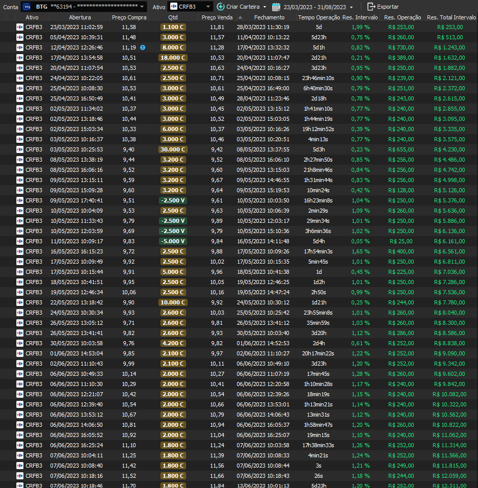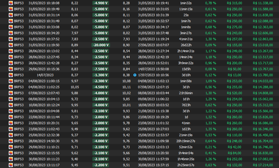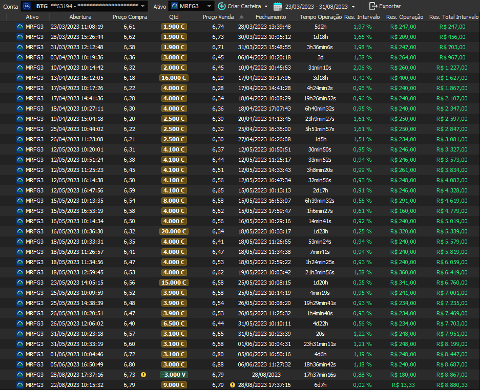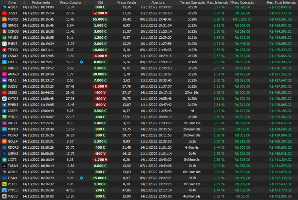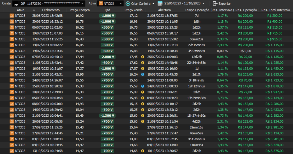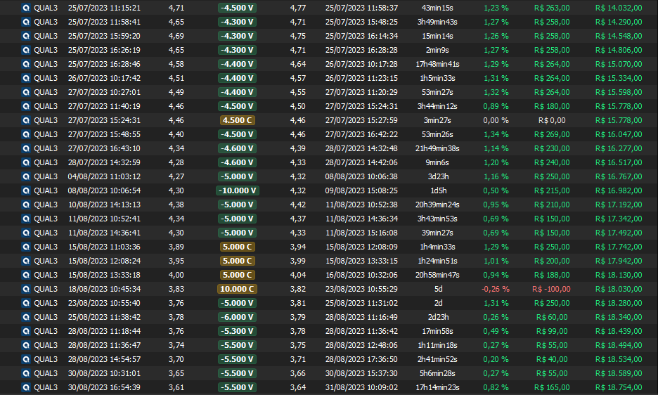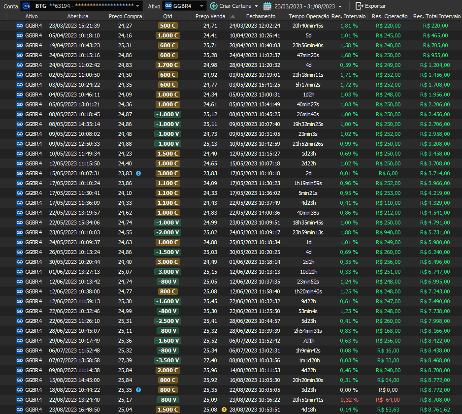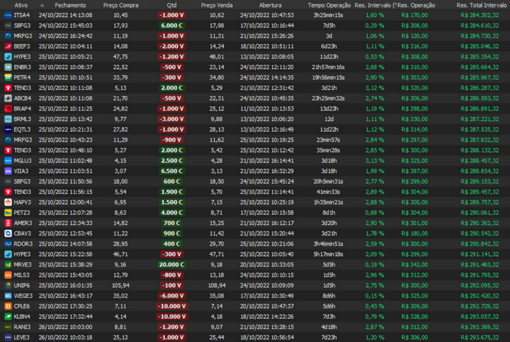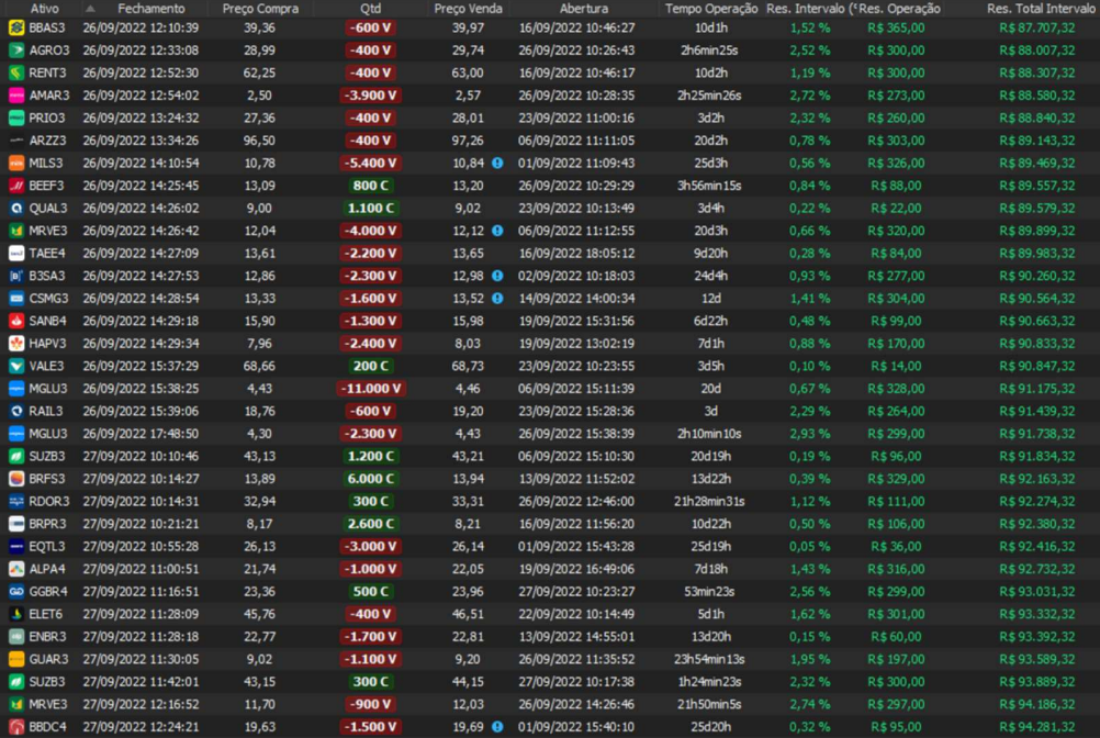 Relatório últimas operações Indicador Windex swing trade: