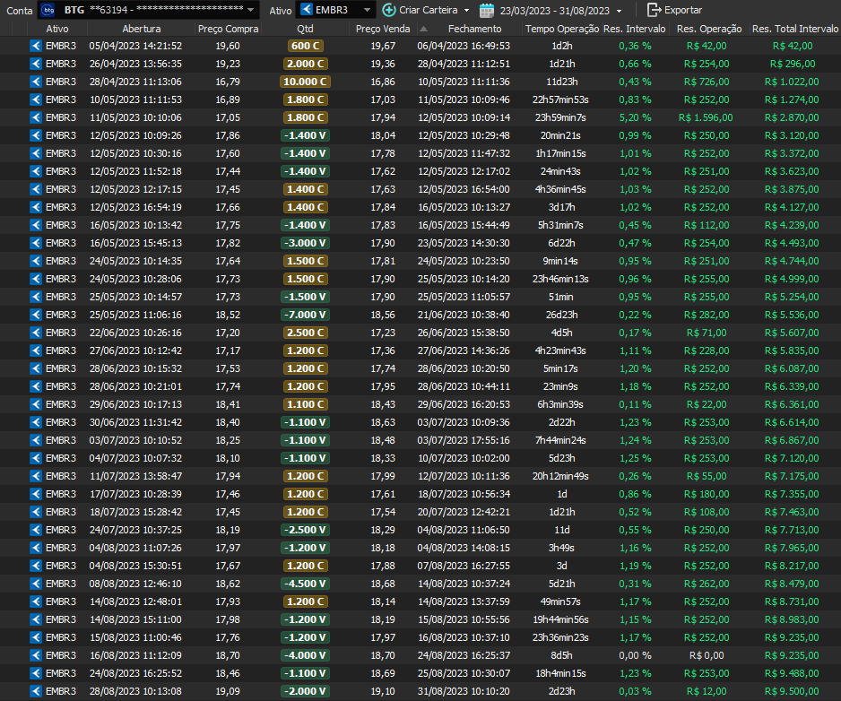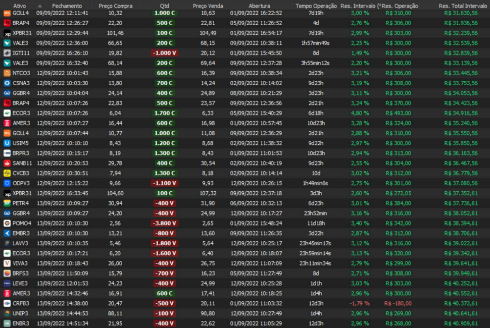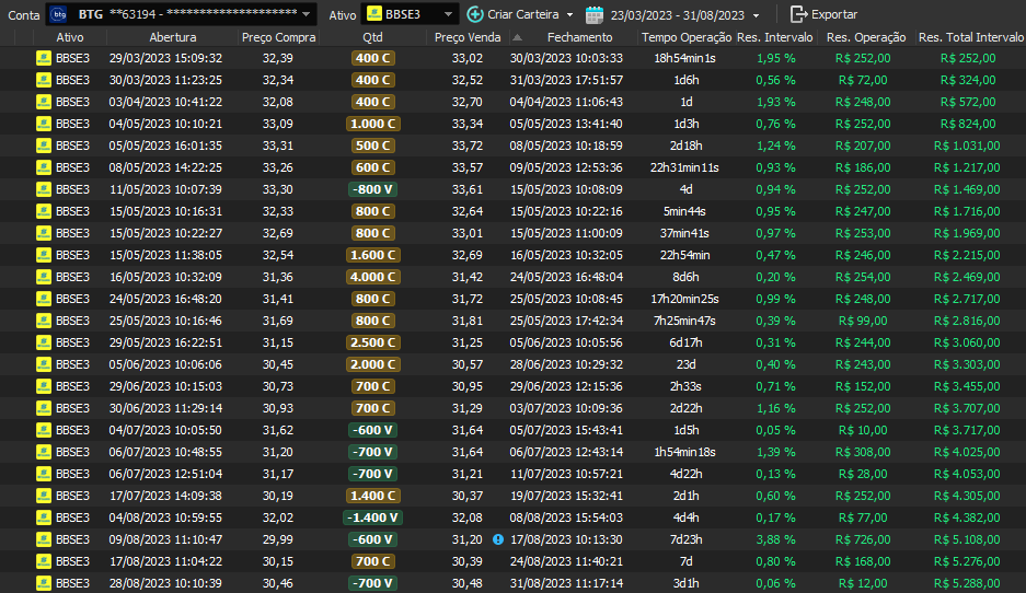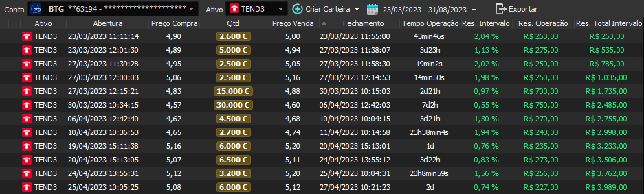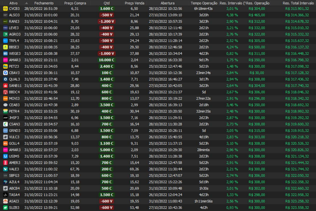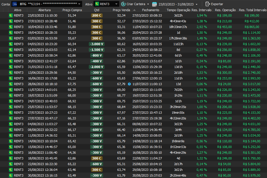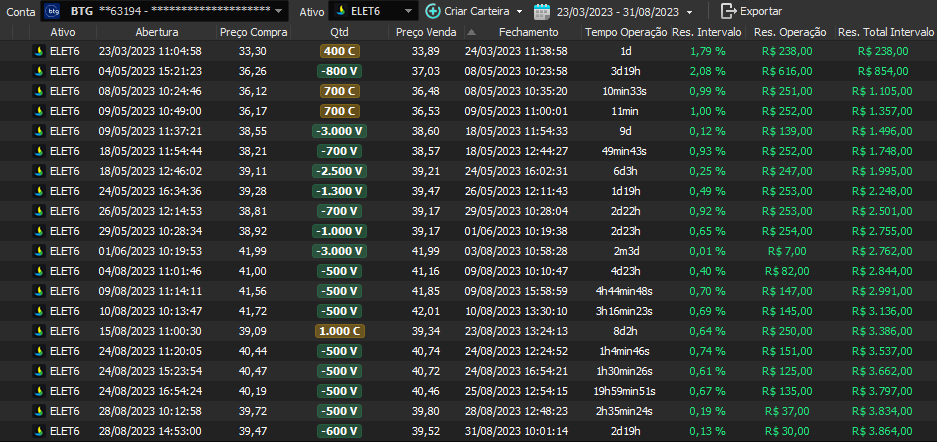 Taxa de acerto de 100% - Rentabilidade de 36% no período - média de 9% a.m