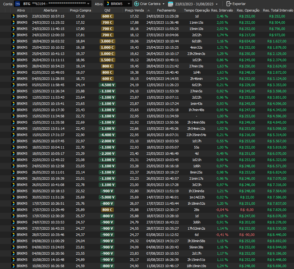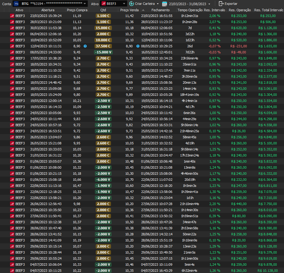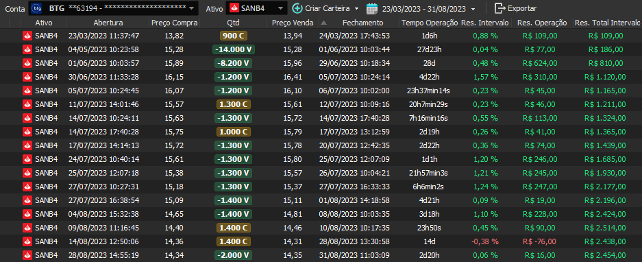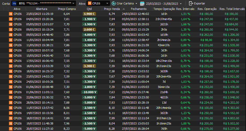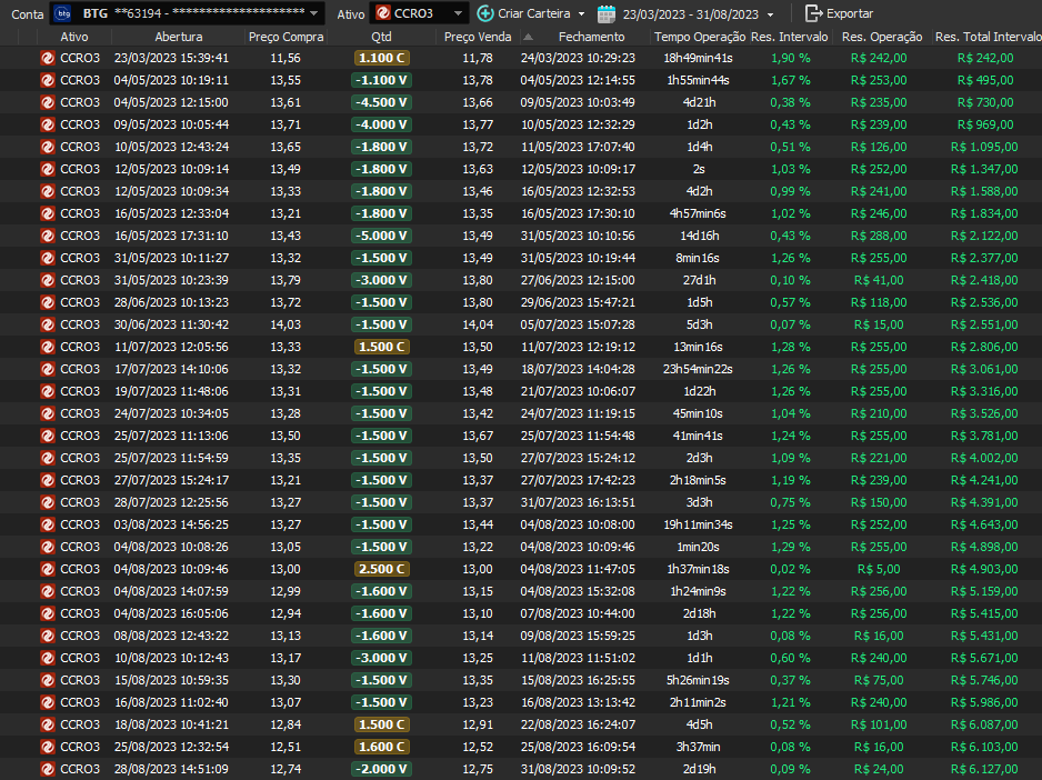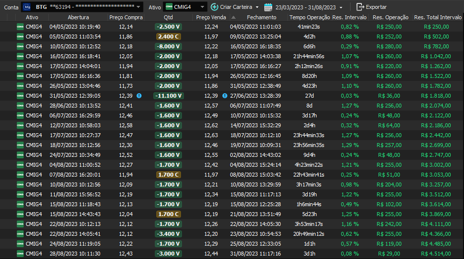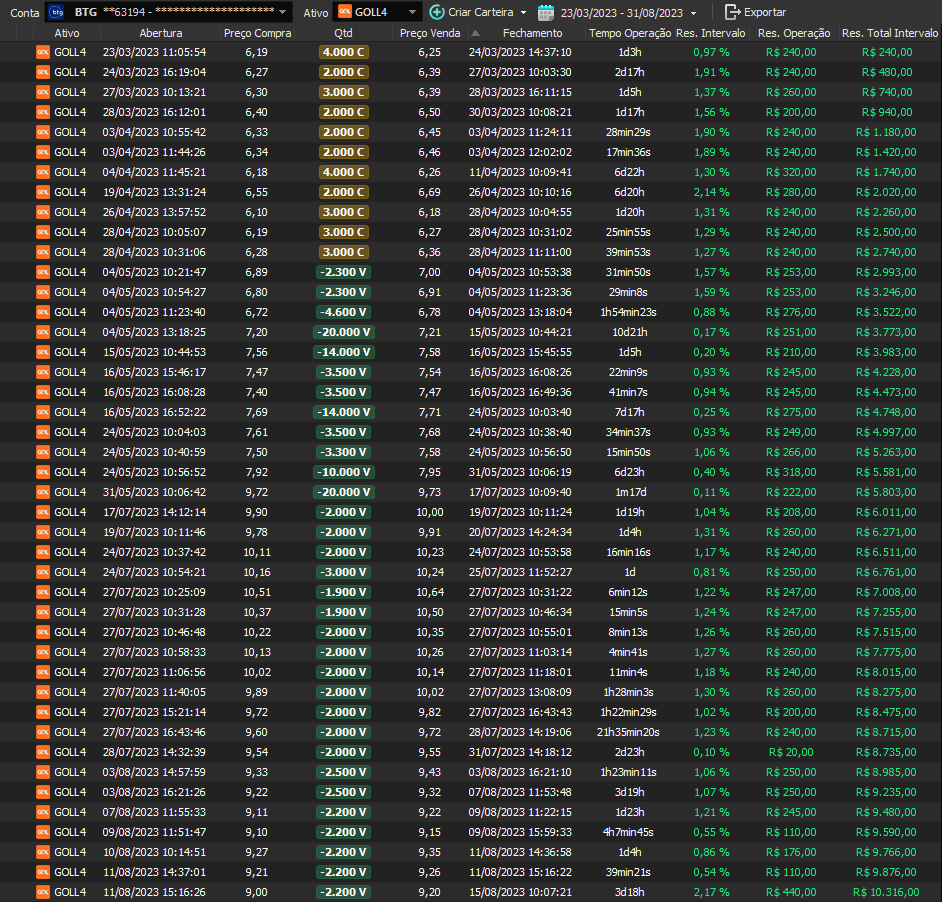 Taxa de acerto de 100% - Rentabilidade de 36% no período - média de 9% a.m