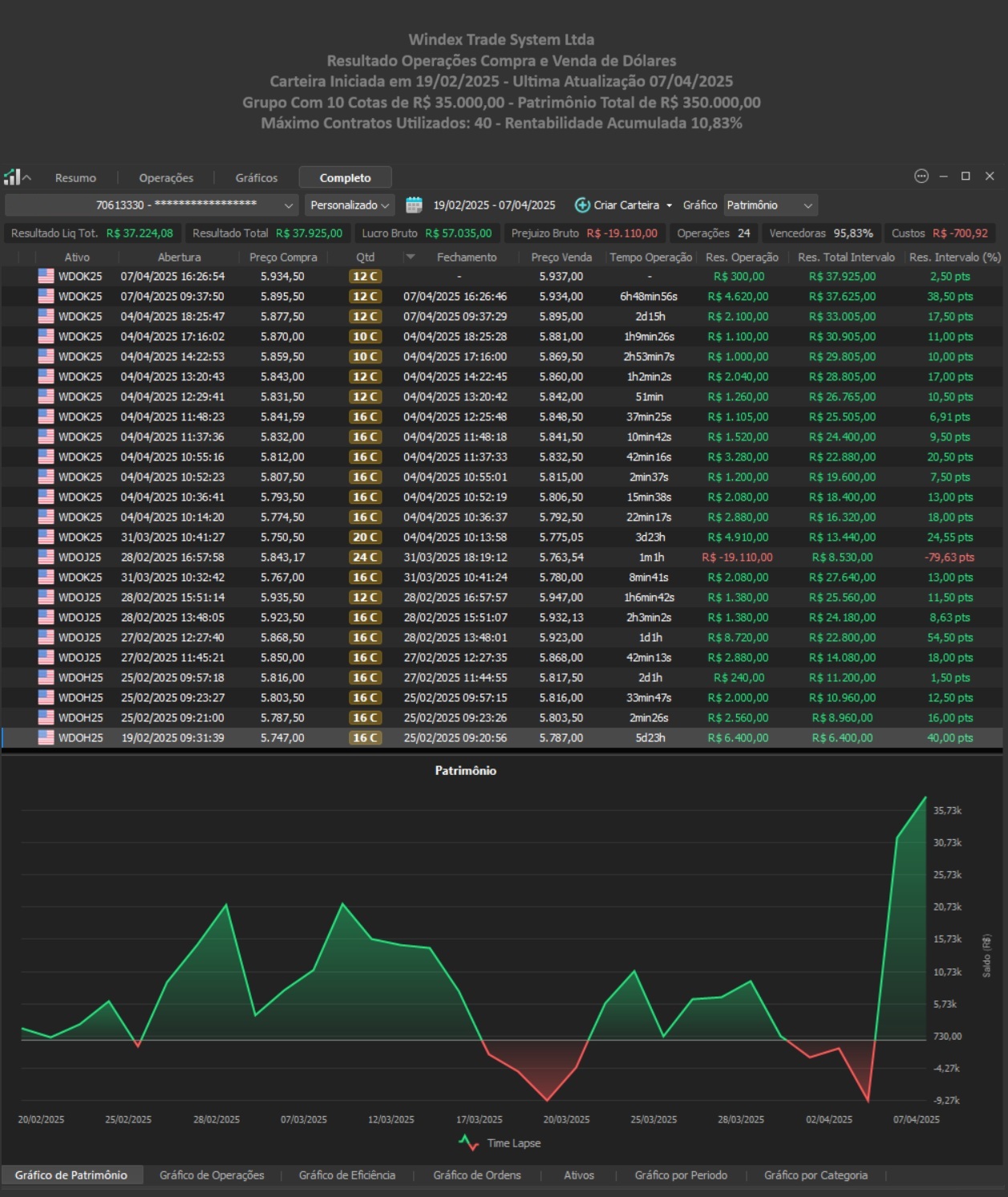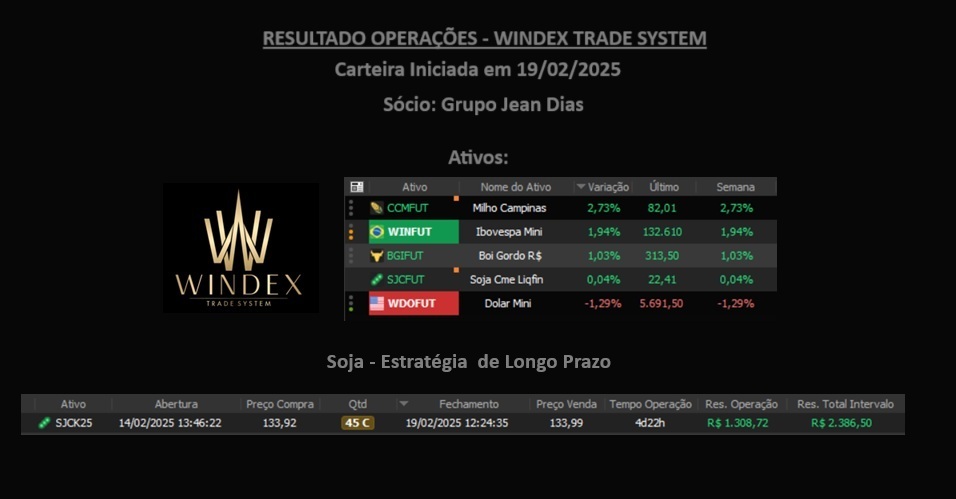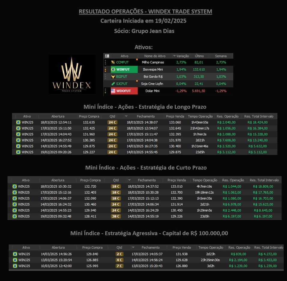 Observação de transparência: Resultados passados não garantem resultados futuros. Qualquer operação envolve risco e pode gerar perdas. O indicador Windex trabalha com método e gestão, não com promessa.